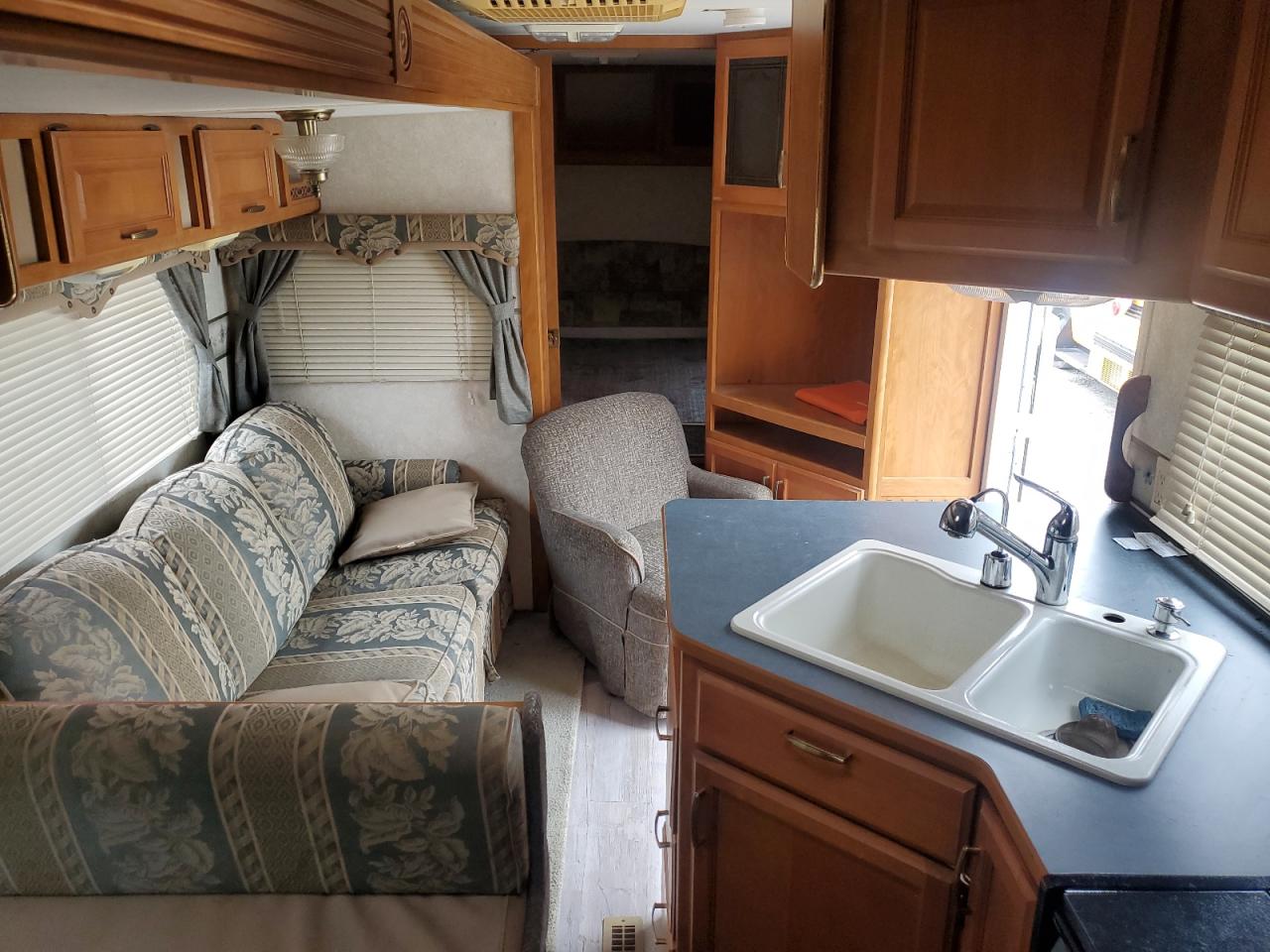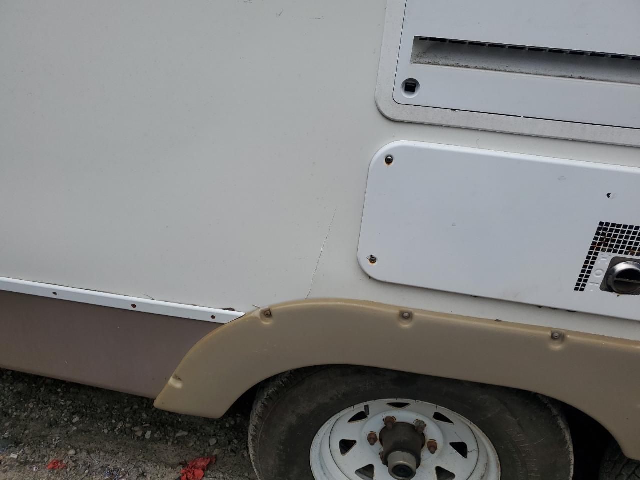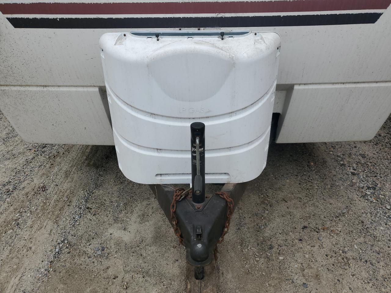 GoodThe 2004 Prowler Regal travel trailer exhibits minor cosmetic imperfections. The exterior shows evidence of dents and scratches. The white paint displays some wear. The wheels, lights, and glass appear to be in acceptable condition. The interior shows moderate wear and tear consistent with age and use. There is no visible airbag deployment.