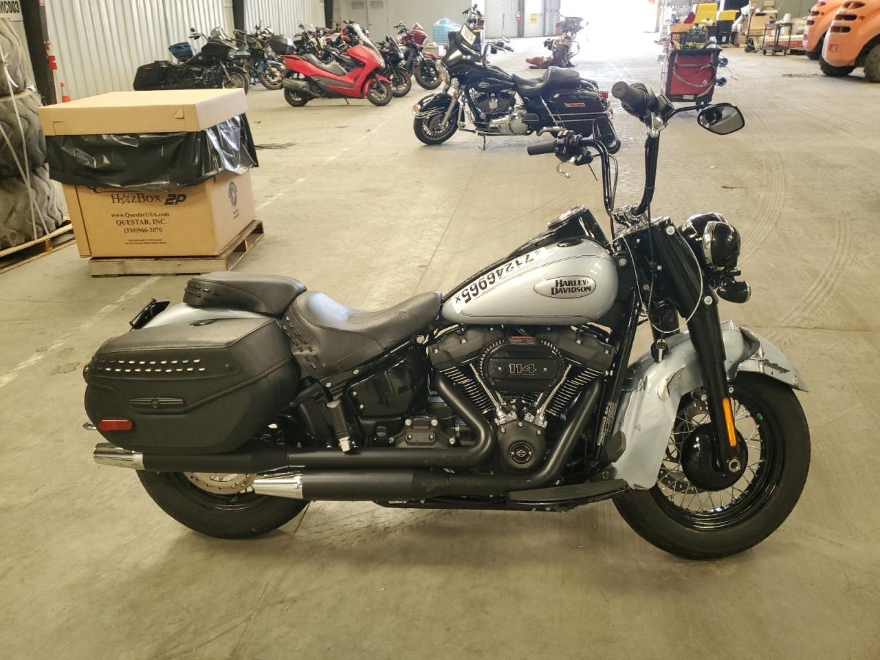 FairThe 2024 HARLEY-DAVIDSON FLHCS exhibits damage to the front end. The bike is silver and the engine starts. The vehicle's damage is categorized as Body, and the car is drivable. Summary: Motorcycle with body damage, drivable, fair overall condition. Search terms: Harley-Davidson FLHCS, 2024, motorcycle, body damage, silver, drivable, fair condition.