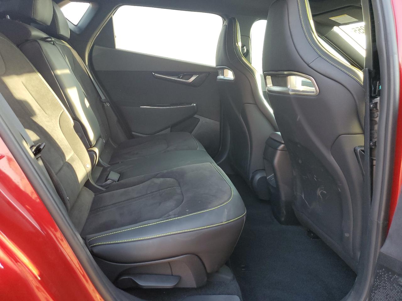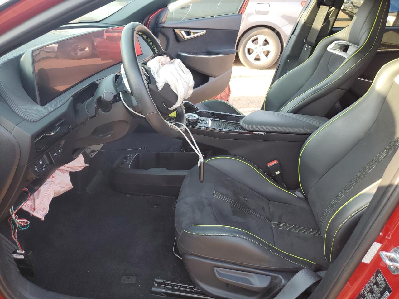 FairThis is a damaged 2023 KIA EV6 GT, red in color, with Run & Drive Verified status. The primary damage is to the front end, and secondary damage is present on the side of the vehicle. The images show significant damage to the front, including the bumper, hood, and fender. The side of the car shows damage, and the airbags have deployed, and interior is damaged. The wheels appear to be in damaged. The car is likely drivable and requires considerable repair.