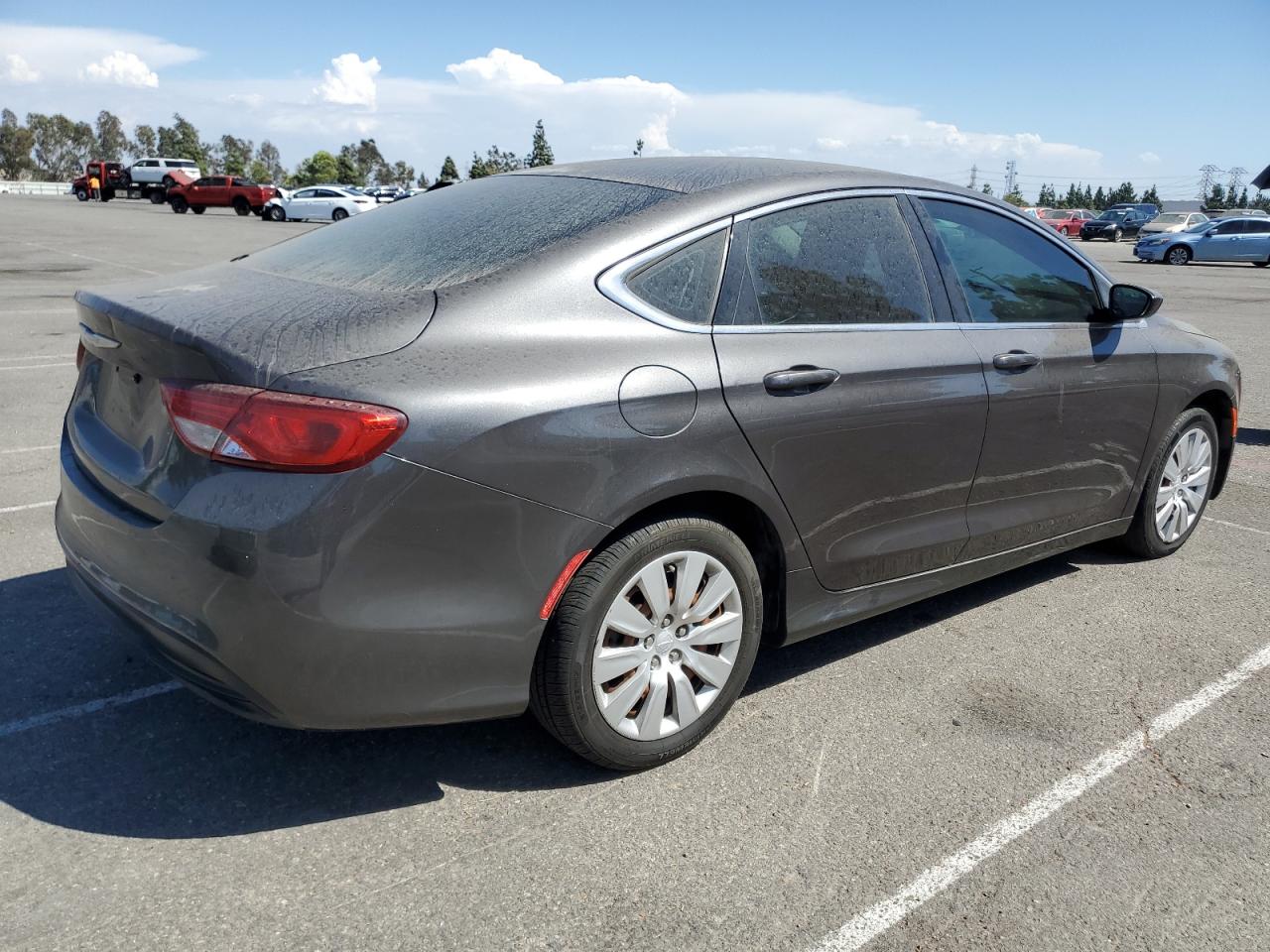 GoodThe 2015 Chrysler 200 LX, a gray sedan, shows signs of normal wear and tear. It is a Run & Drive Verified vehicle. The exterior exhibits moderate visible damage, but the wheels, lights, and glasses appear to be intact. Interior condition is also good. Overall, the car is in decent condition, drivable and well-maintained for its age.