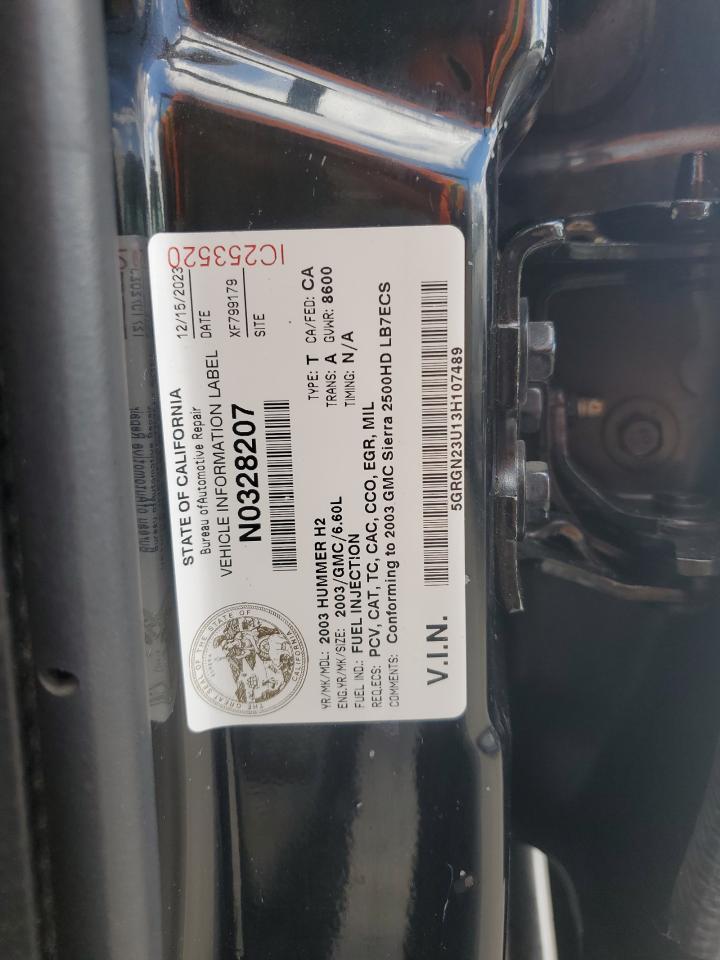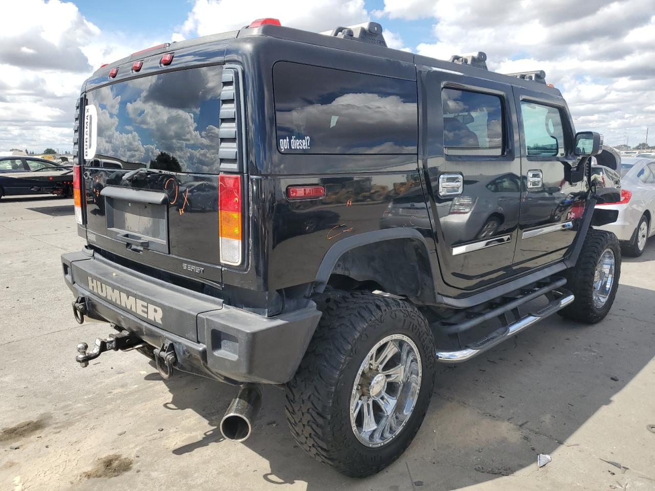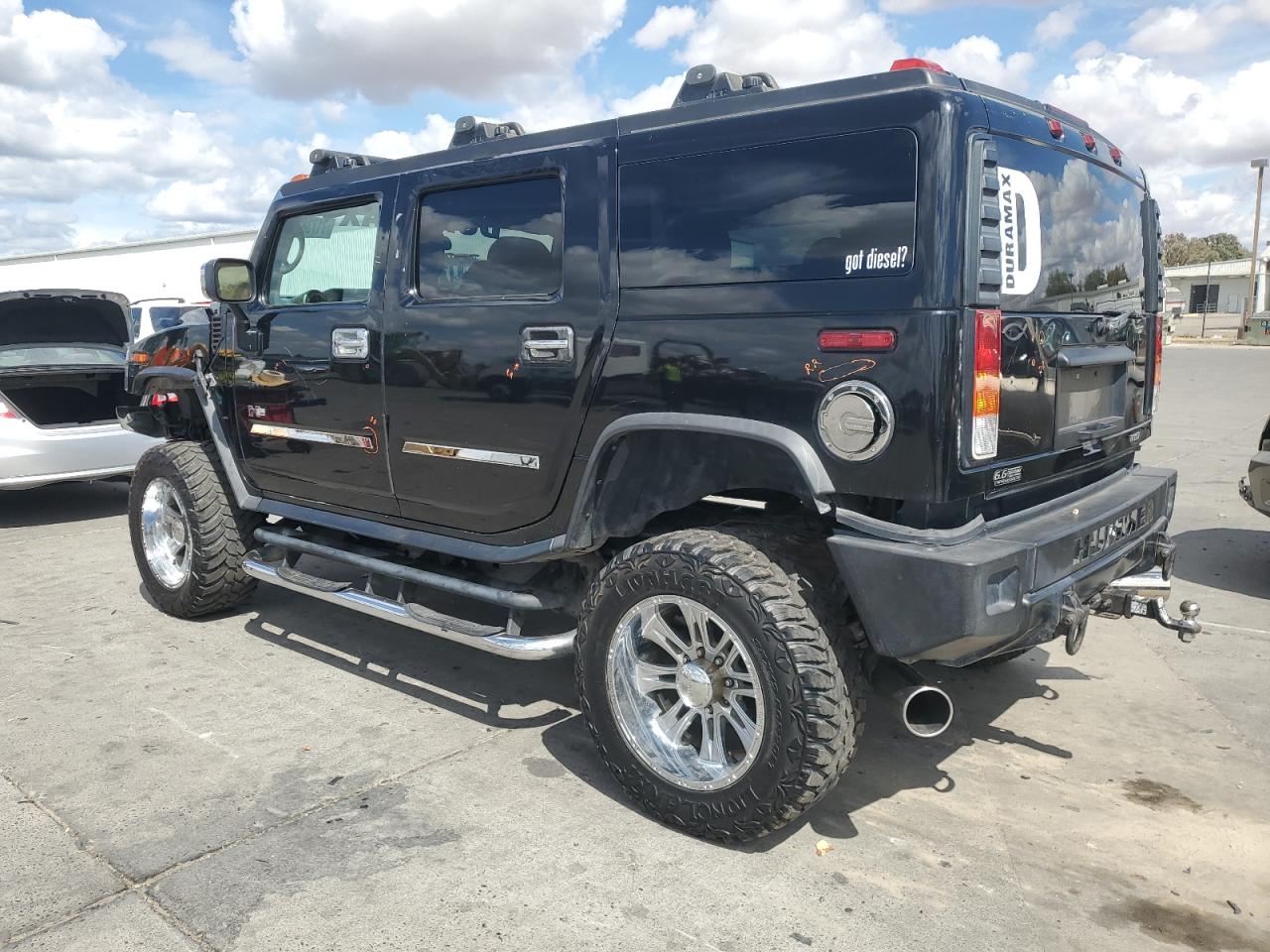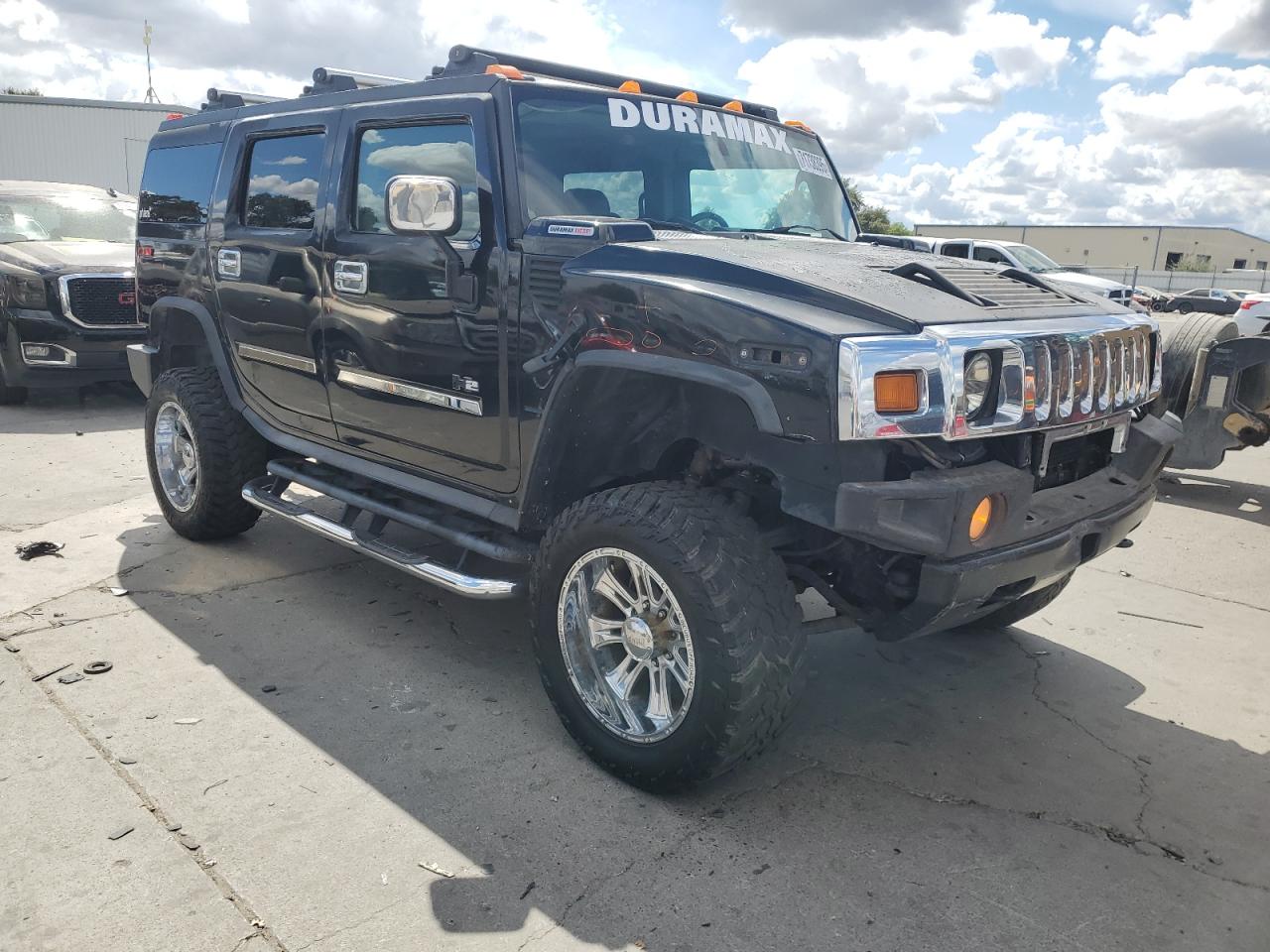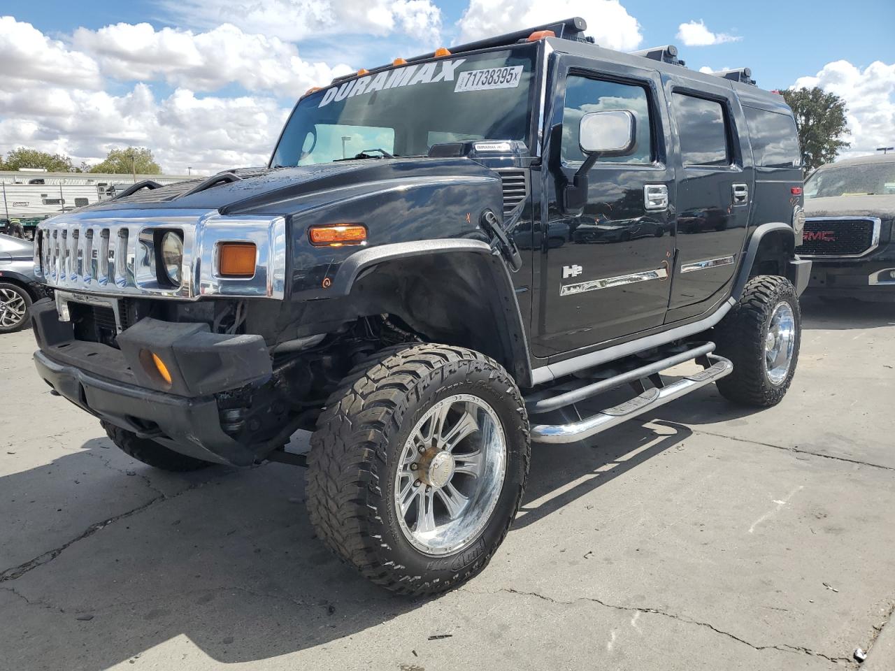 GoodThe 2003 HUMMER H2 is a black SUV. The primary damage is to the front end, with secondary damage on the side. The vehicle starts and drives. The wheels appear to be in good condition, while the lights and glasses appear to be functional. Overall, the vehicle shows signs of wear and tear consistent with its age and mileage.