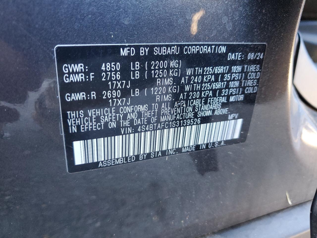 4S4BTAFC1S3139526Final Bid