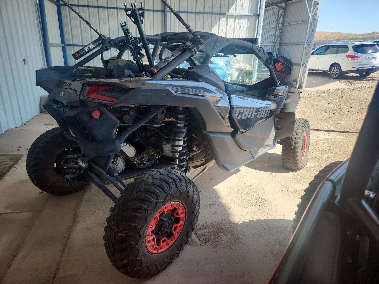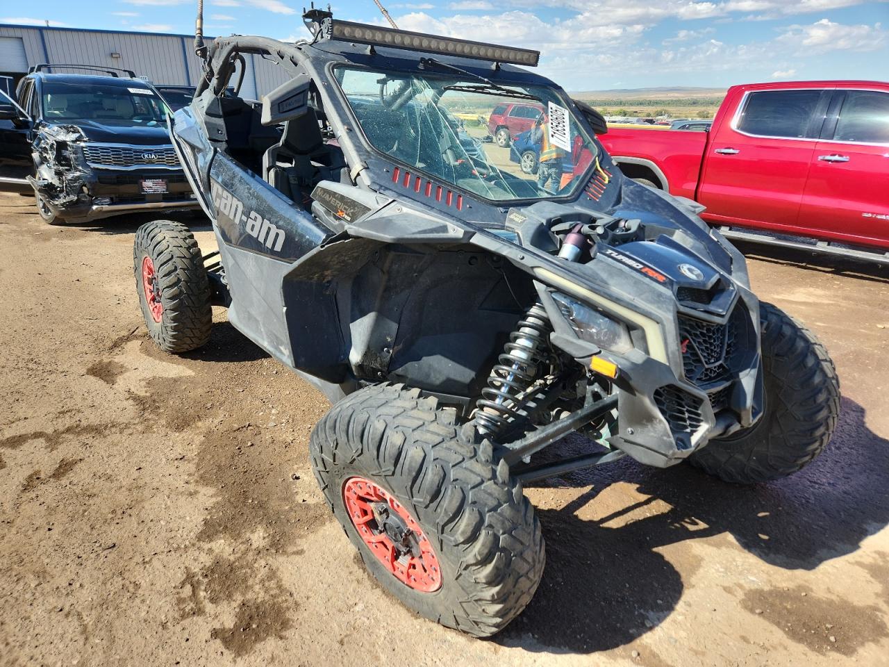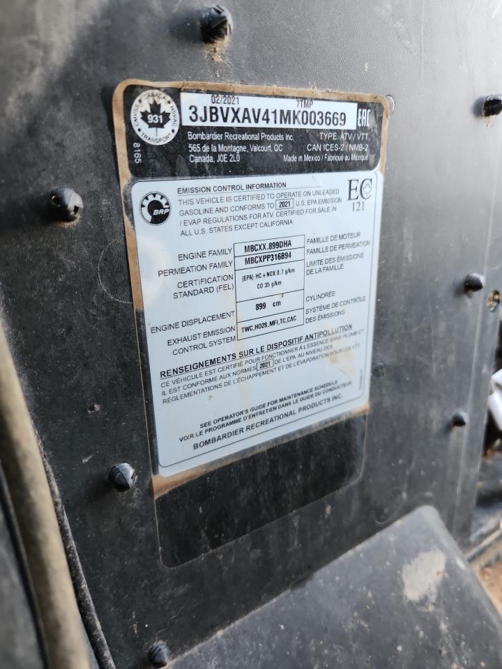 FairThe CAN AM MAVERICK X3 X RS TUR 2021, a black side-by-side UTV, presents with significant front-end damage. The vehicle's exterior shows moderate damage, impacting its overall condition. The interior also reflects wear and tear, with noticeable damage.