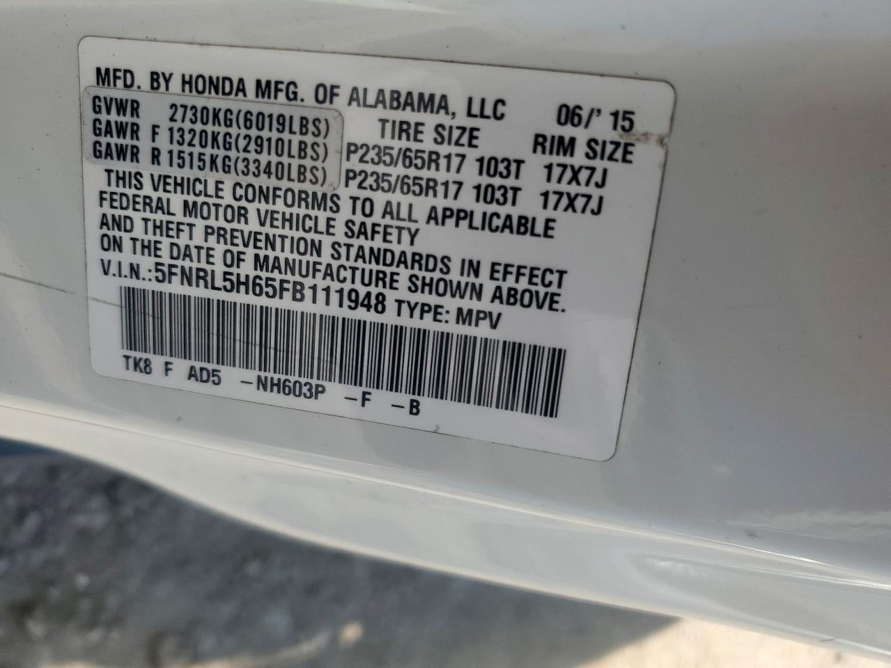5FNRL5H65FB111948Final Bid