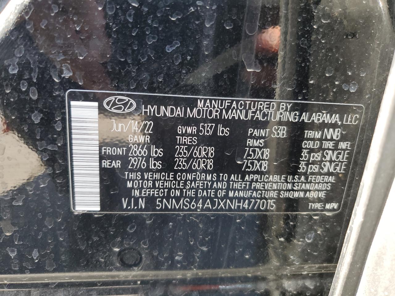 5NMS64AJXNH477015Final Bid