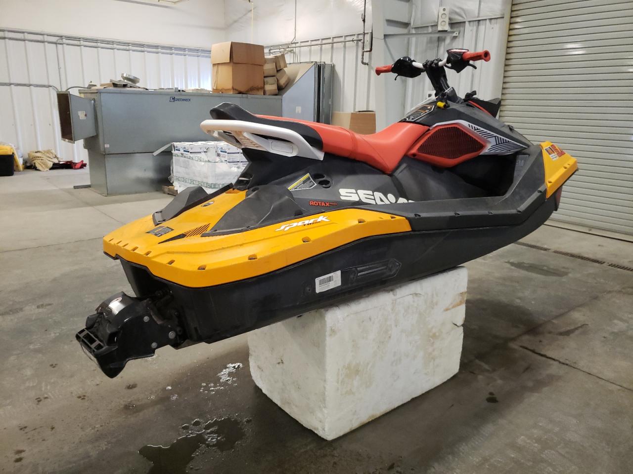 FairThe 2019 Sea-Doo Spark Trix shows signs of wear. The primary damage is to the top/roof with secondary damage to the undercarriage. The exterior is orange. The vehicle starts. It has 157.4 hours on it.