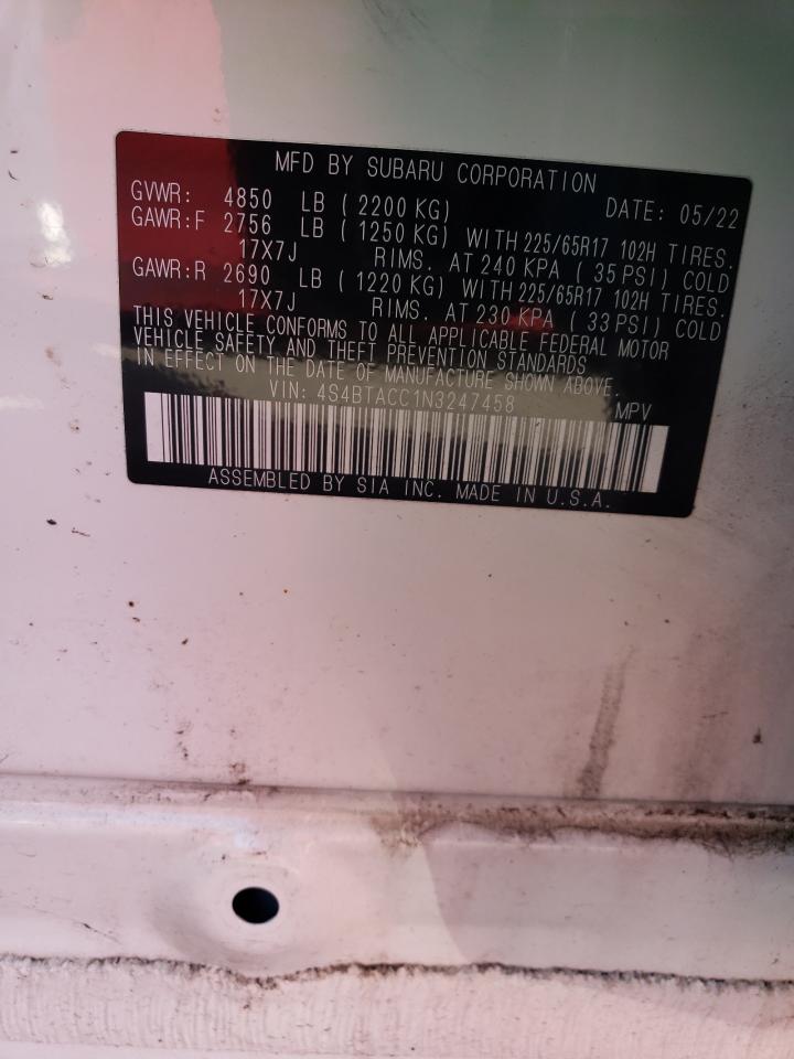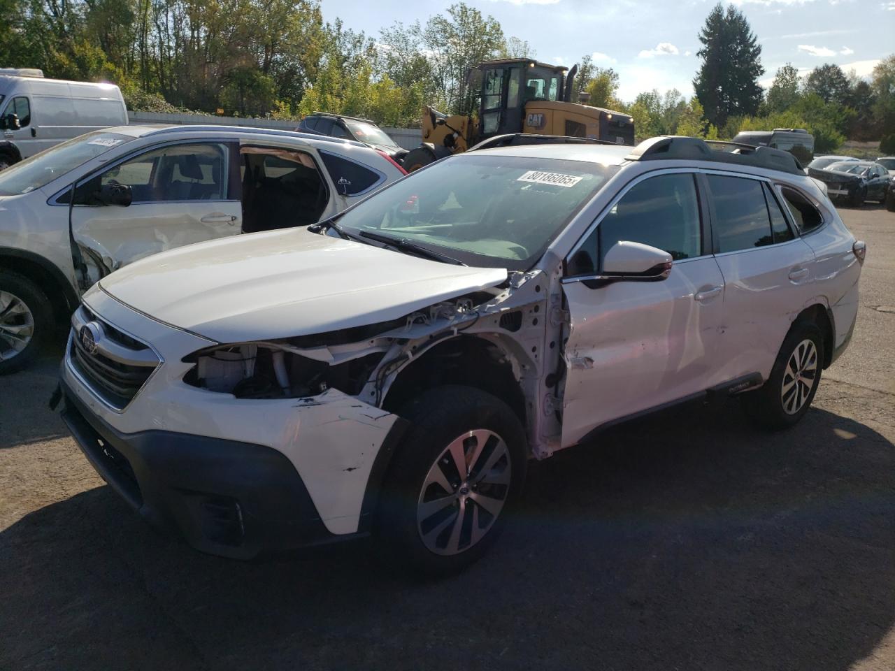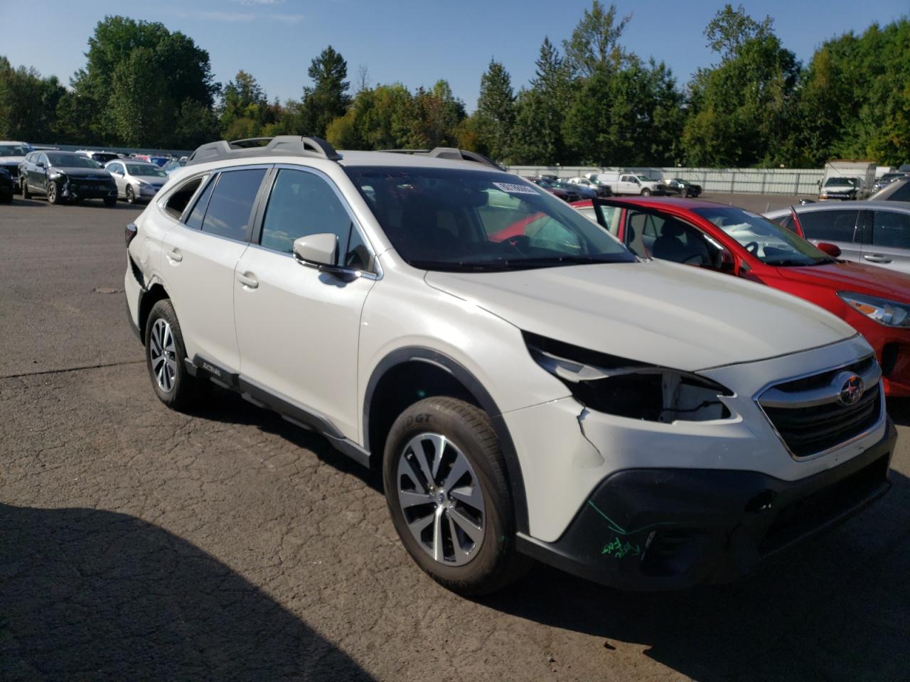 FairThis is a white 2022 Subaru Outback Premium with front and rear end damage. The vehicle's body has been affected, indicating body damage, and the exterior condition is rated as Fair. The interior shows a good condition. The car appears drivable despite the damage.