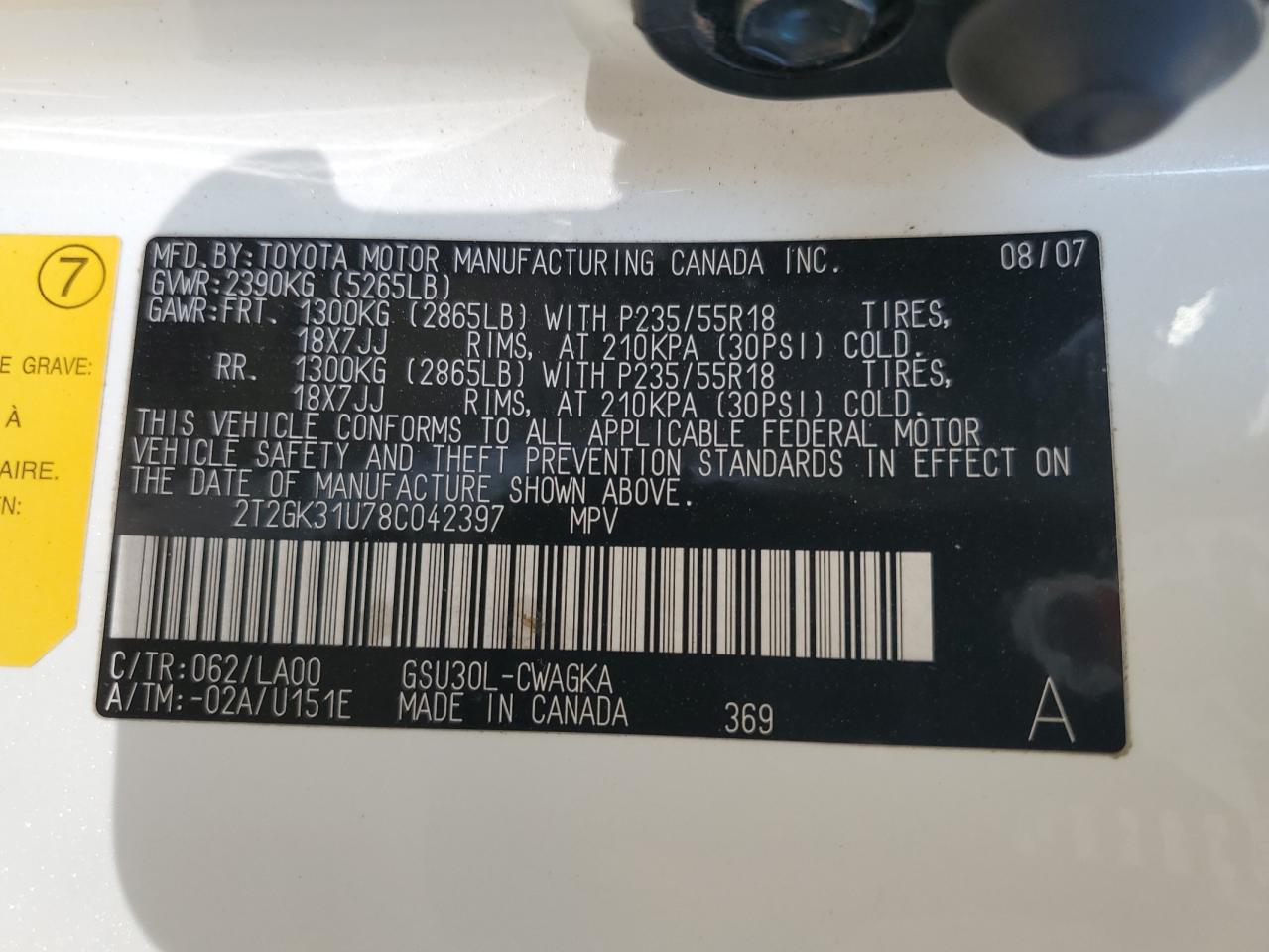 2T2GK31U78C042397Final Bid