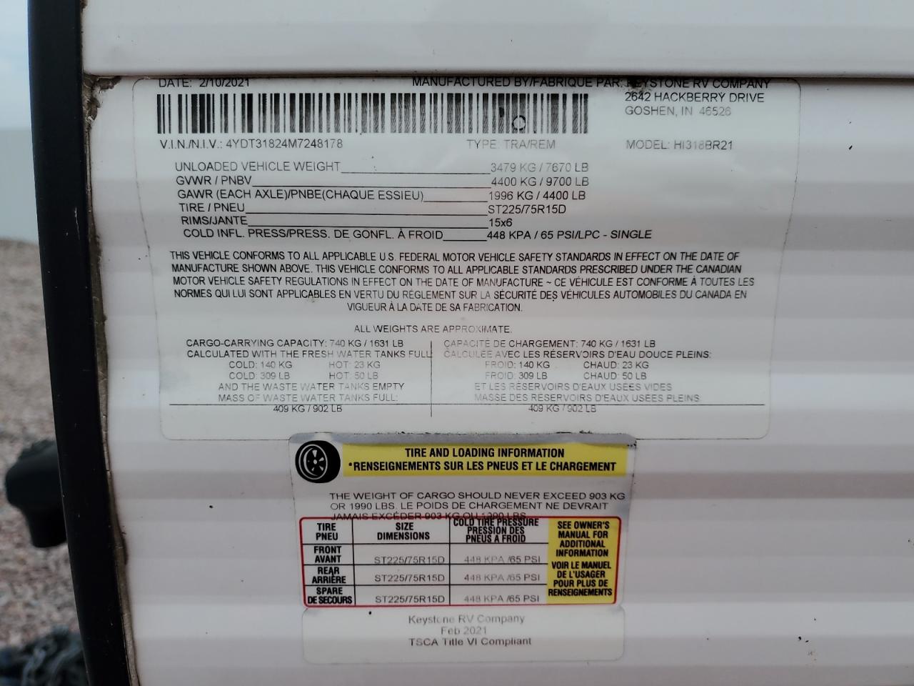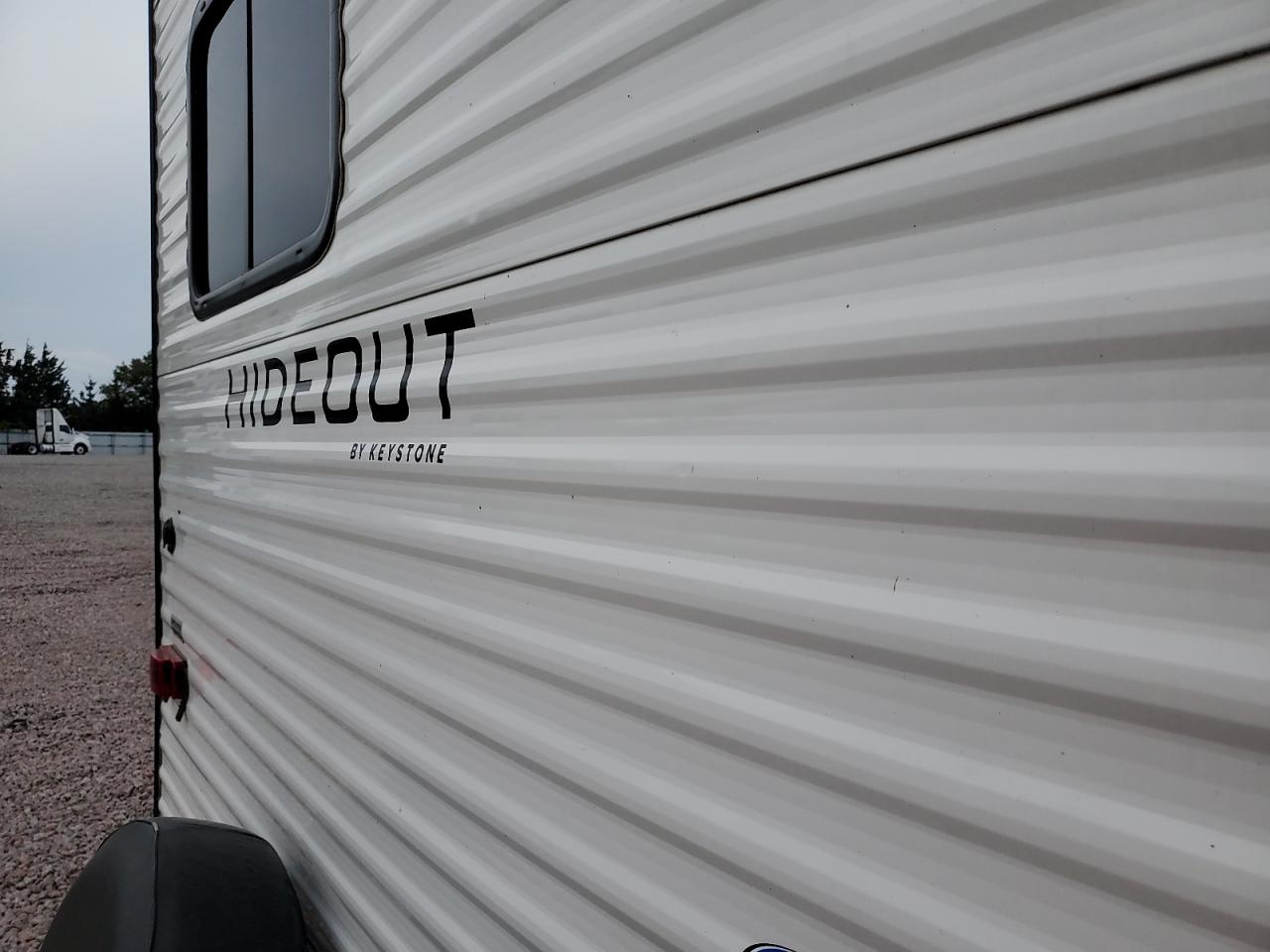 GoodThe KEYSTONE HIDEOUT 2021 appears to have hail damage, with no other secondary damages noted. The exterior is white. The car is in good condition overall, with no significant damage to the wheels, lights, or glasses. Interior condition is good with minor visible damage. The vehicle appears to be drivable.