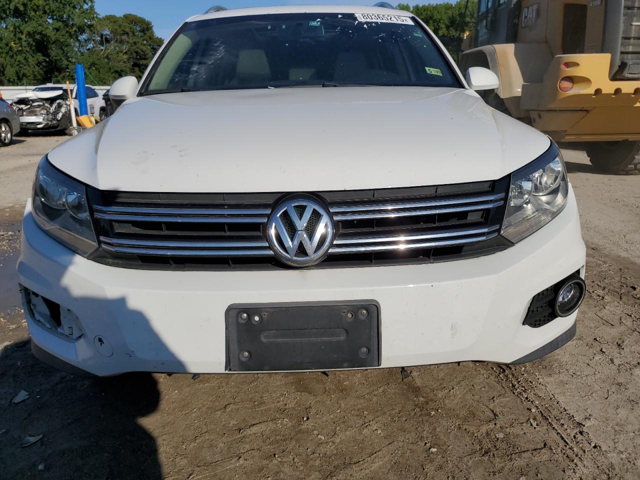 GoodThe 2014 VOLKSWAGEN TIGUAN S is white, with minor dent/scratches as the primary damage, and no secondary damage. The car appears drivable. The wheels, lights and glasses have no noticeable damage. The interior shows minor wear and tear consistent with age and mileage. The airbag condition is unknown. Overall, the vehicle shows moderate damage to the body panels but is drivable.