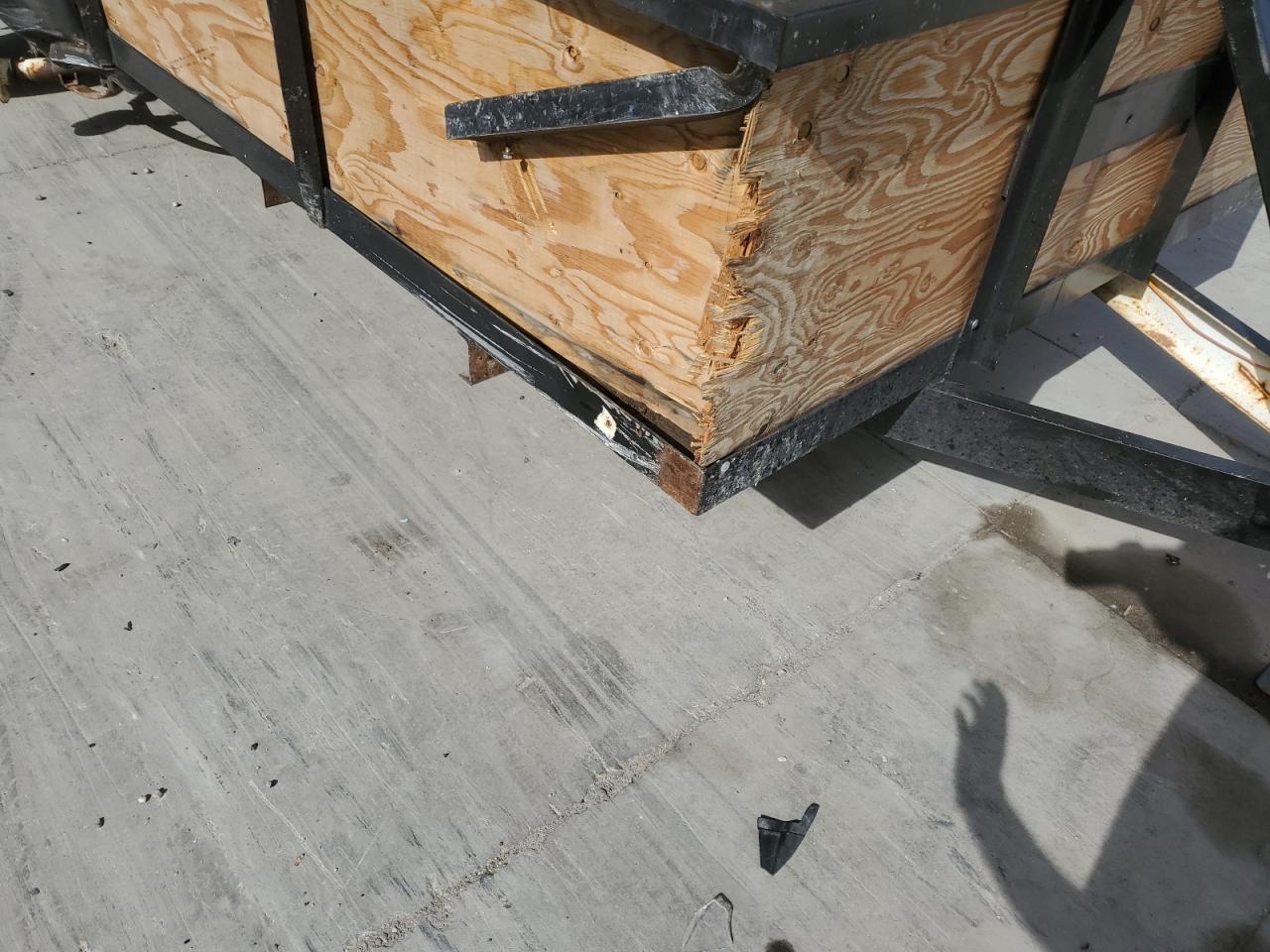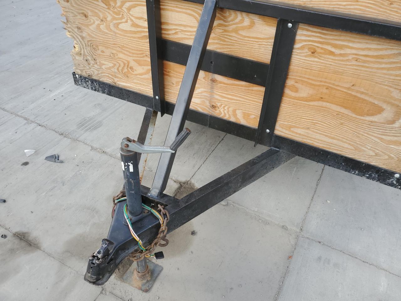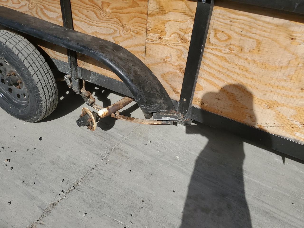 The trailer has visible damage to the side panels, with no other apparent damage.