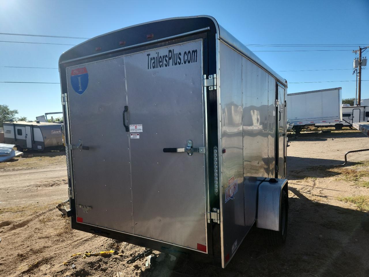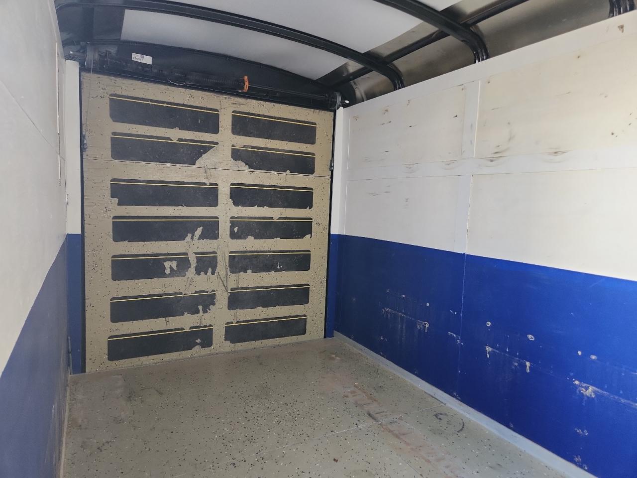 FairThis is a gray 2022 INTERSTATE UNKNOWN trailer. The primary damage is hail. The trailer shows signs of use with some dents and scratches. The interior appears to be in good condition with some wear. The wheels are fine and the lights and glasses are intact.