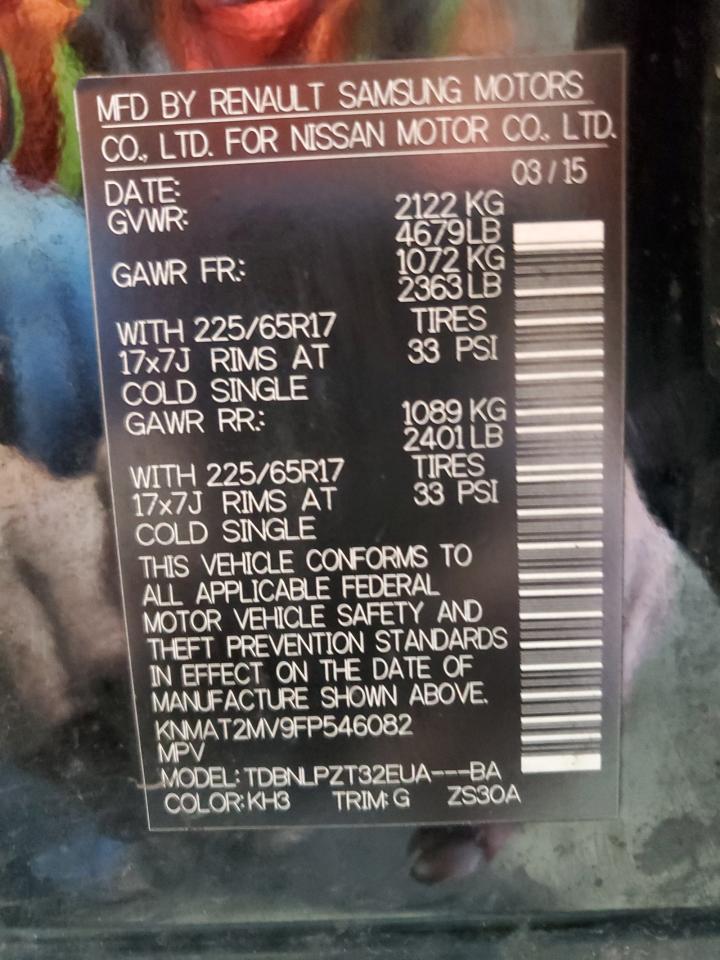 FairThe 2015 Nissan Rogue S, in black, exhibits front-end and top/roof damage, with a Run & Drive Verified status. The vehicle's exterior shows moderate visible damage, while the interior presents minor wear. Damage includes front-end impact and roof damage, impacting the car's overall condition. Wheels appear intact.