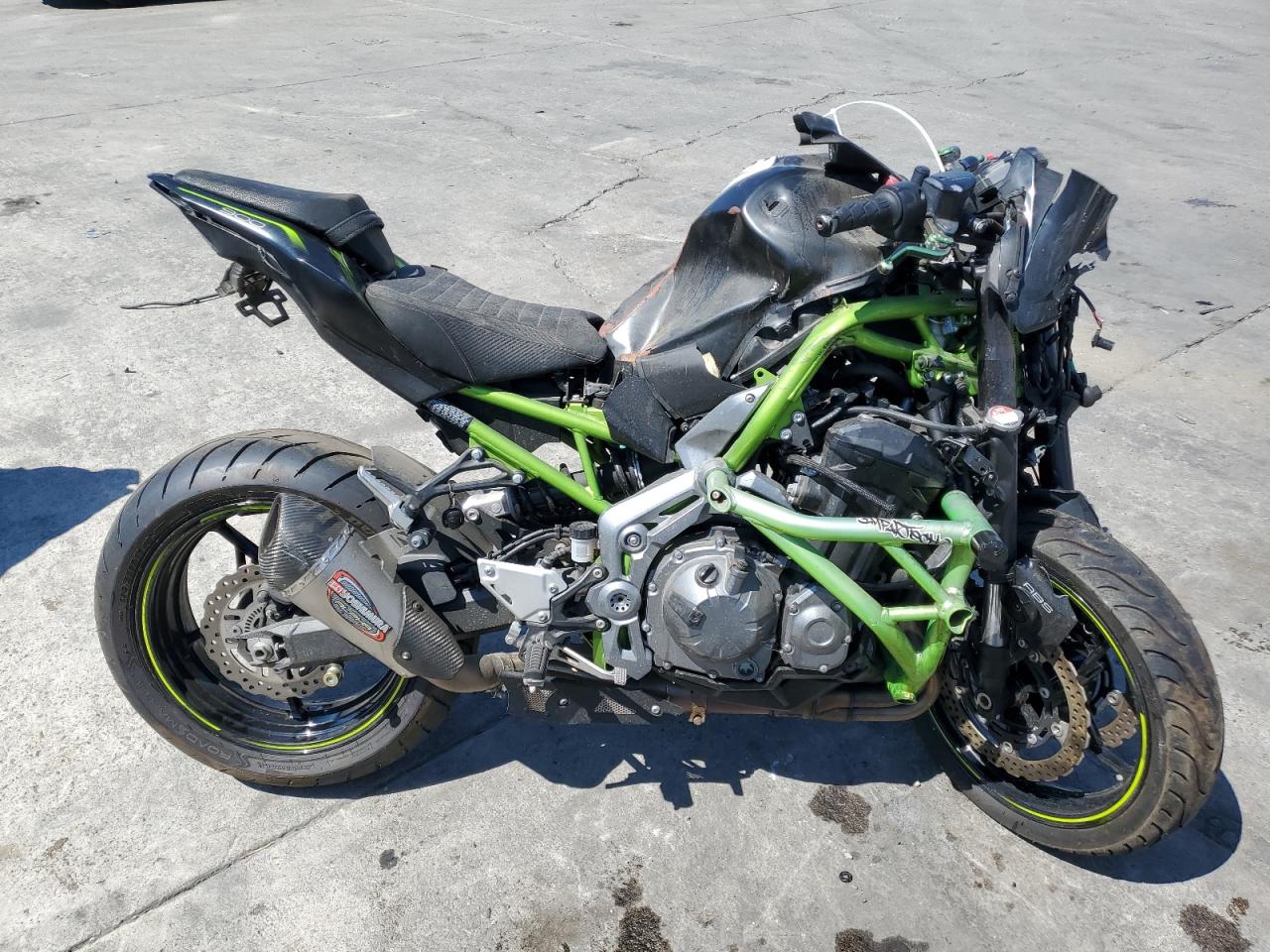 FairThe KAWASAKI ZR900 2019, with its green color, is heavily damaged. The primary damage is to the front end, with no secondary damage reported. The wheels appear to be intact, but the lights and glasses are severely damaged or missing. The motorcycle has sustained significant damage, indicating it's not in a drivable state.