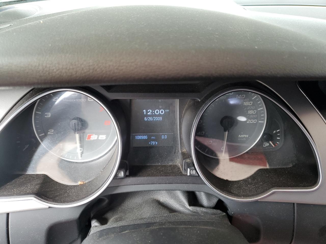 Fair2010 AUDI S5 PREMIUM in black. This vehicle shows evidence of frontal and rear-end damage. The exterior exhibits moderate damage, while the interior shows wear and tear. Several components require repair or replacement. The car is not currently drivable, and significant repairs are needed. The wheels appear to be damaged.
