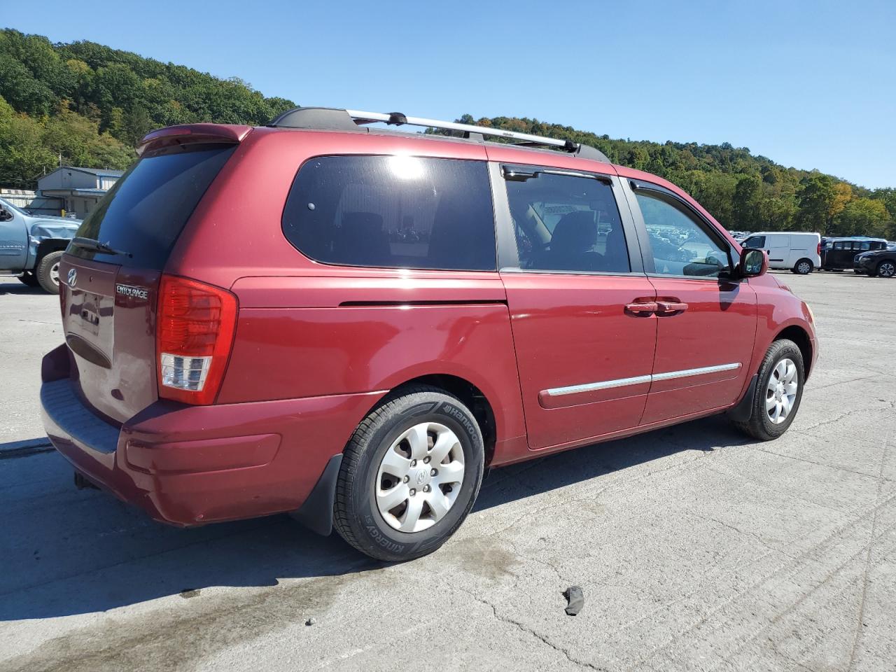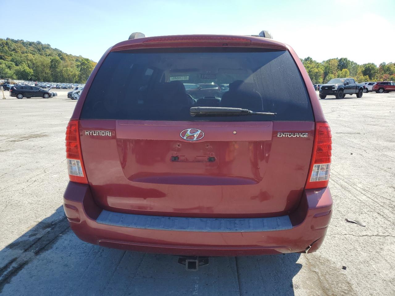 FairThis 2008 HYUNDAI ENTOURAGE, maroon in color, shows rear-end damage. The vehicle starts. The exterior condition is fair, with moderate visible damage, potentially requiring repairs. The interior condition is good, with minor wear and tear. Overall, the vehicle is in fair condition. The damage includes rear-end damage, impacting its overall state. The car is drivable despite the damage.