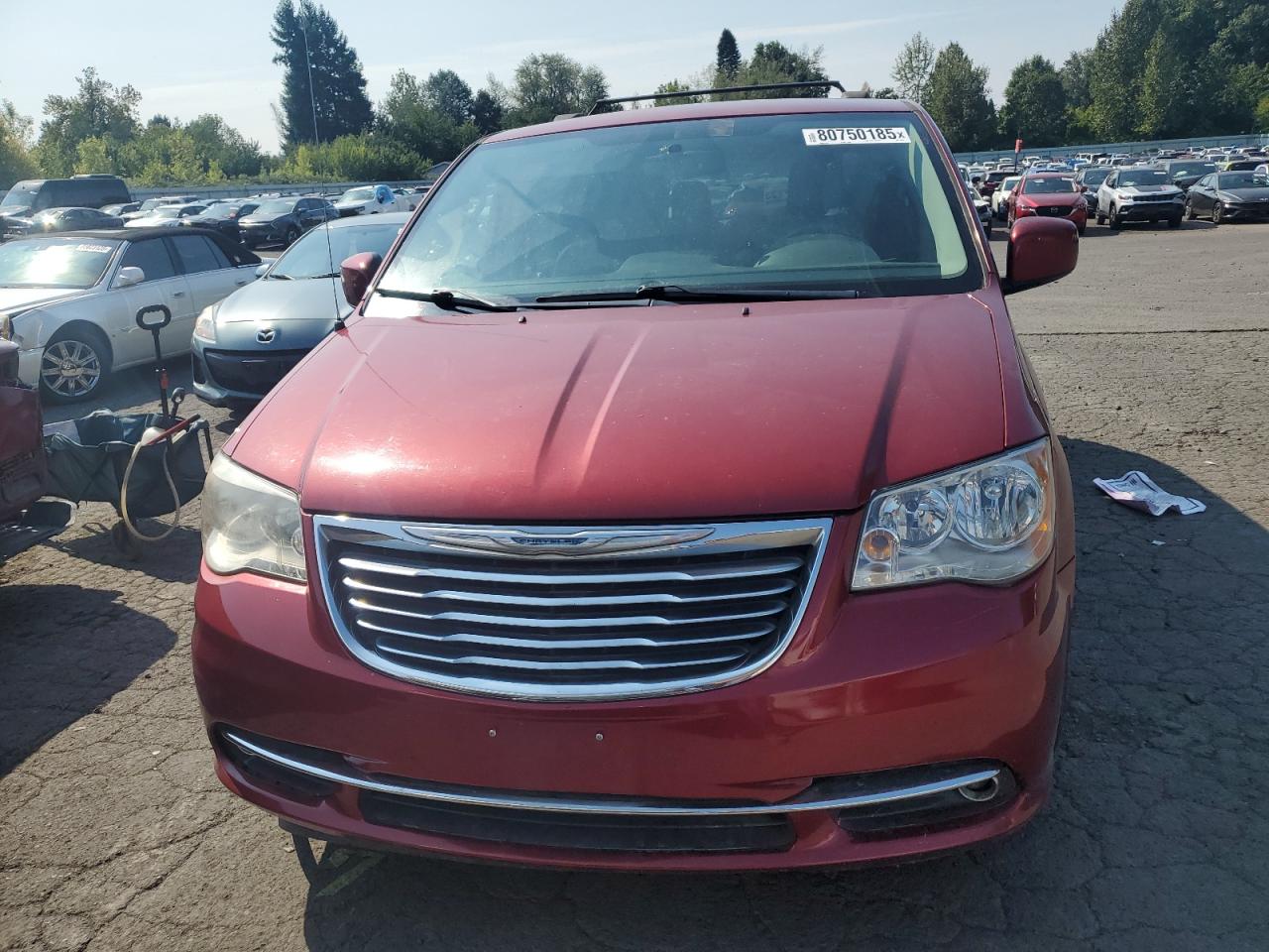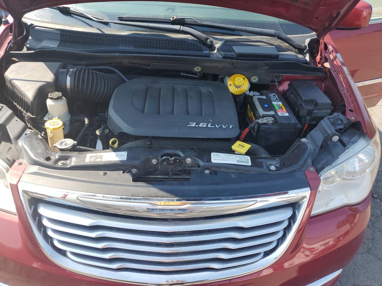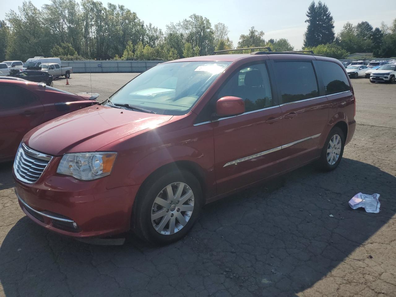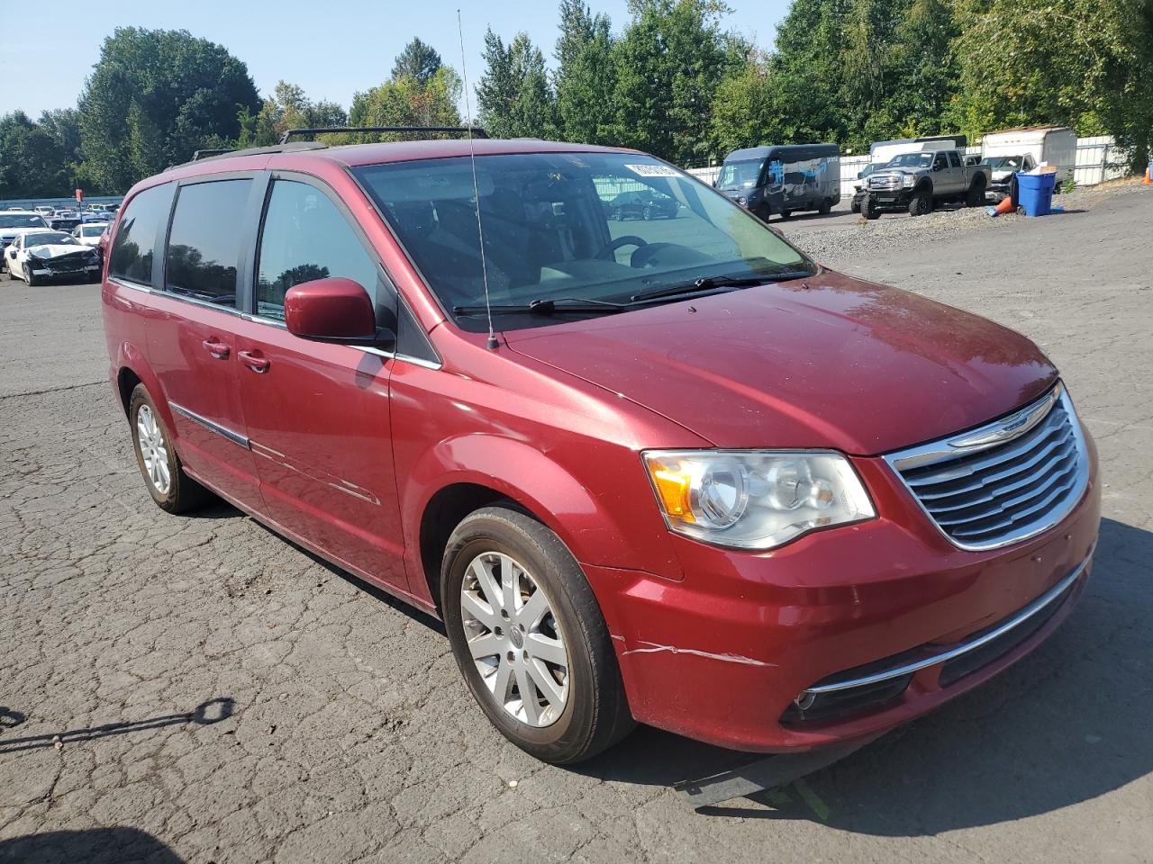 GoodThe car is a red 2015 Chrysler Town & Country Touring. The primary damage is minor dents and scratches, with no secondary damage. The vehicle appears drivable.