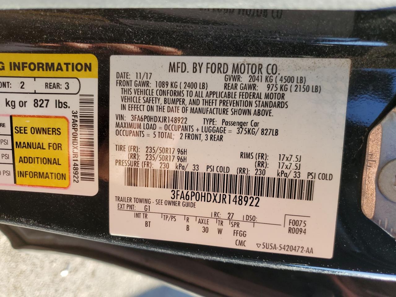 3FA6P0HDXJR148922Final Bid