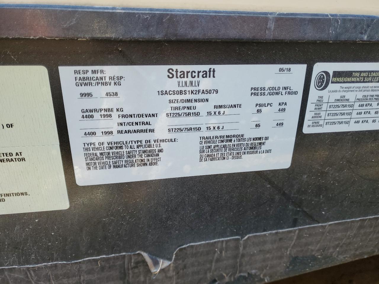 FairThe STARCRAFT TELLURIDE 2019, colored beige, shows signs of water/flood damage. The vehicle's exterior condition is rated as Fair, with visible damage to the body. Interior condition is also rated as Fair, with potential for water damage. The overall state of the vehicle is Fair, requiring repairs. There is no mention of airbag condition. The wheels, lights, and glasses appear to be intact but are affected by water damage.
