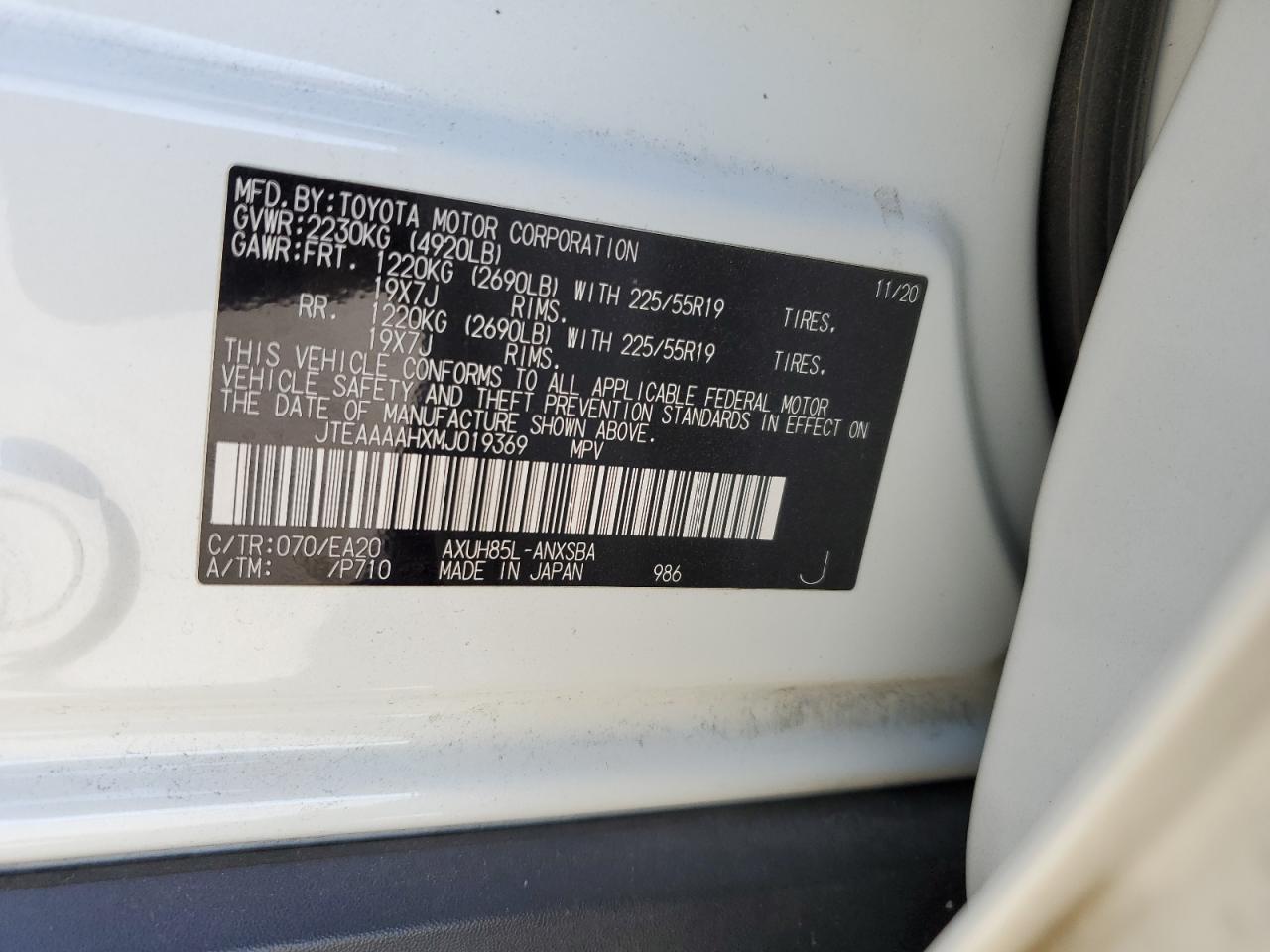 FairThe 2021 TOYOTA VENZA LE is a white hybrid SUV. The primary damage is to the side, with secondary damage to the front end. The exterior shows significant damage with body panel deformation. The interior appears to be in decent condition, with no immediately visible damage to the seats or dashboard. However, the airbags have deployed.