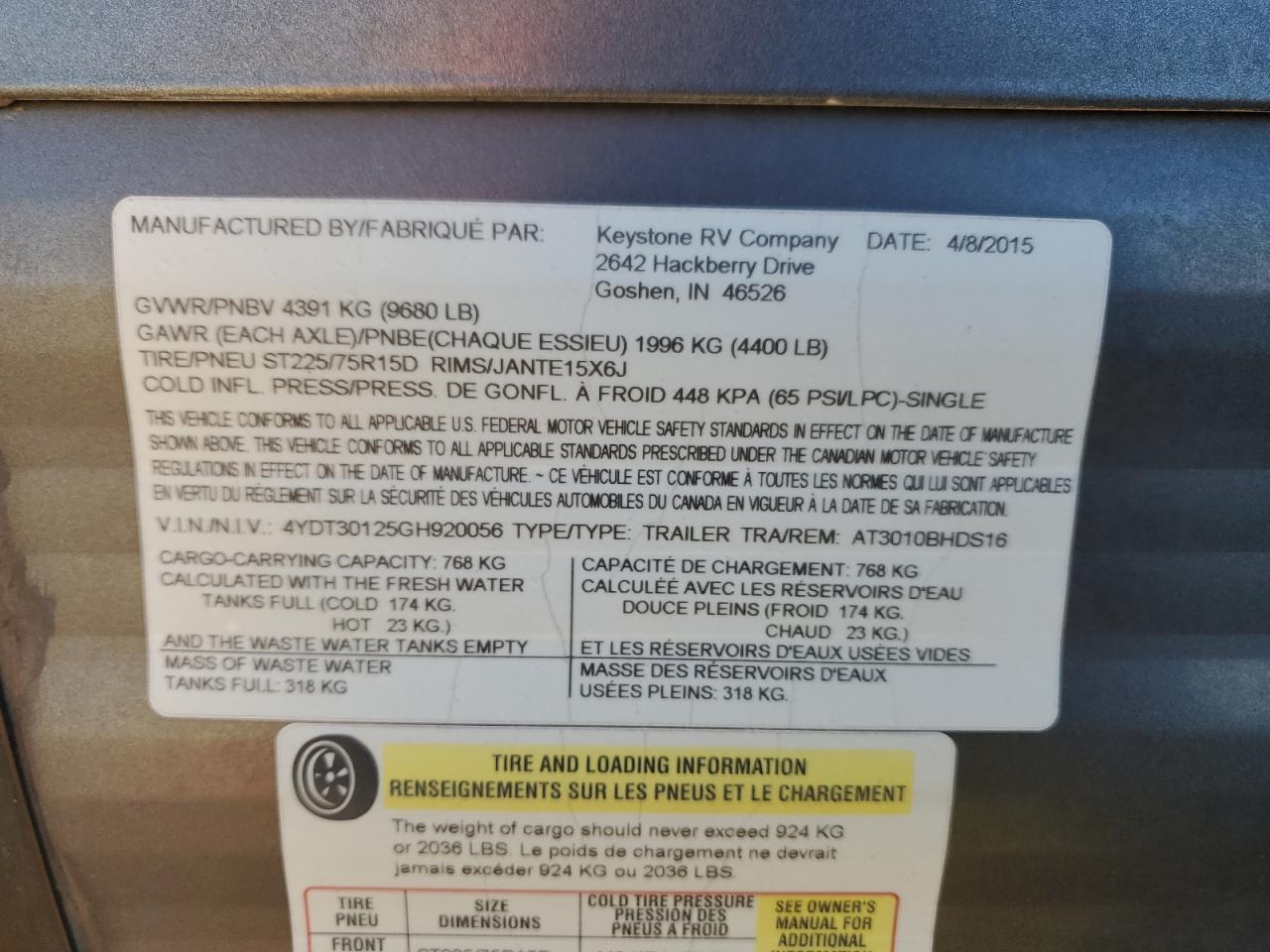 The ASPEN TRAIL 3010BHDS 2016 shows moderate exterior damage. The primary damage is due to WATER/FLOOD, while the secondary damage is HAIL. There is evidence of water-related damage, potentially affecting interior components. The body panels show body damage. The overall condition requires considerable repair.