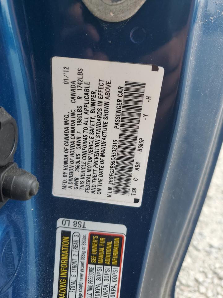 FairThe 2012 Honda Civic LX, in blue, shows significant damage. The front end has major structural damage, while the rear end also has considerable impact. The vehicle starts, suggesting the engine may still be functional. The interior displays signs of wear and tear, and the car's condition reflects a need for extensive repairs.