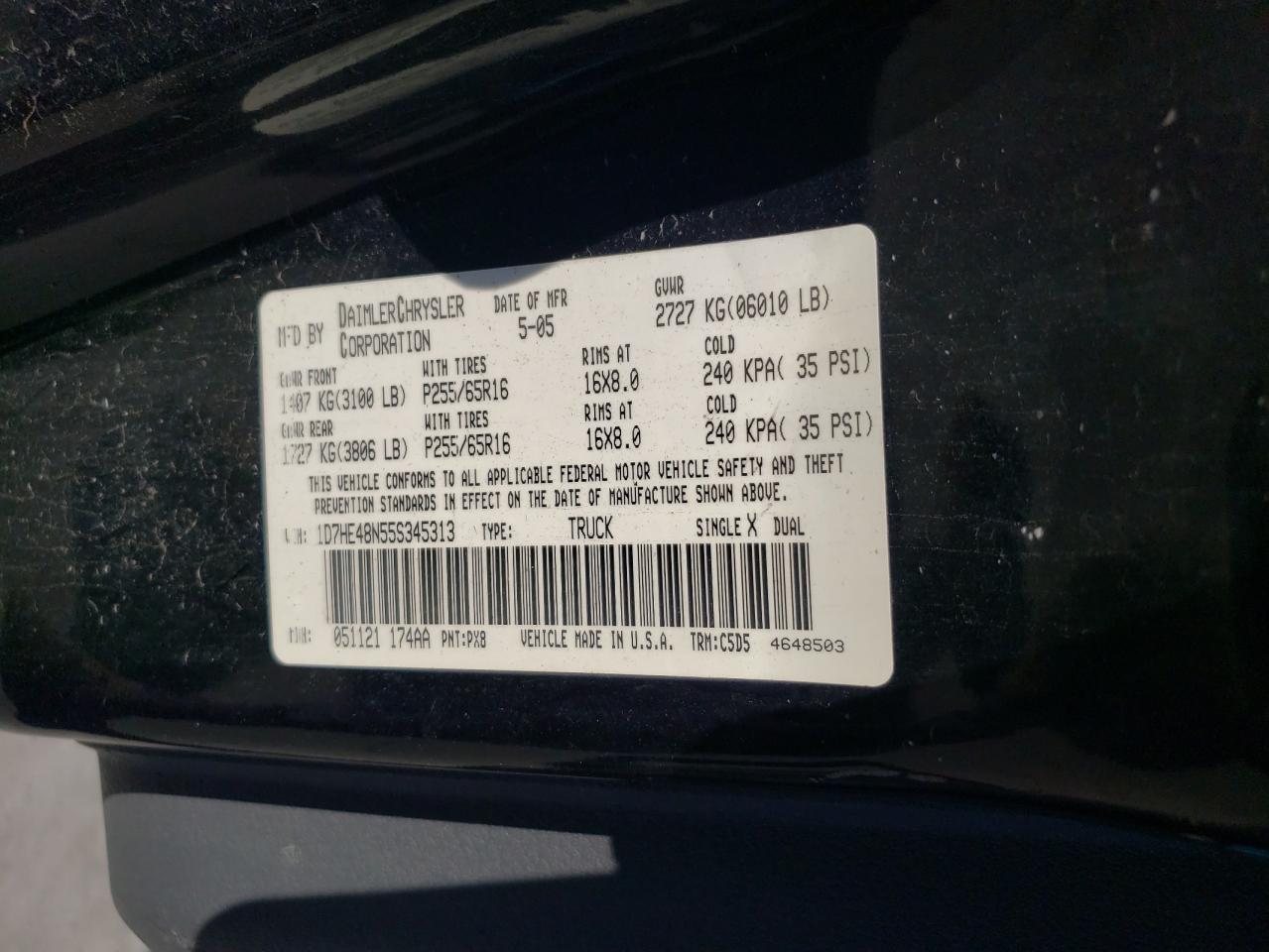 1D7HE48N55S345313Final Bid
