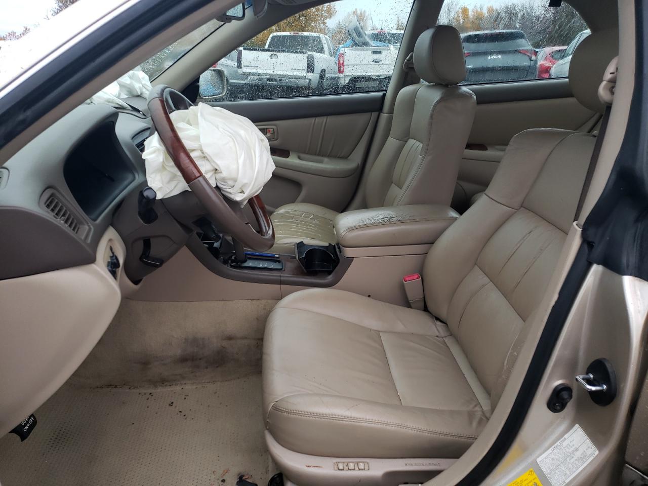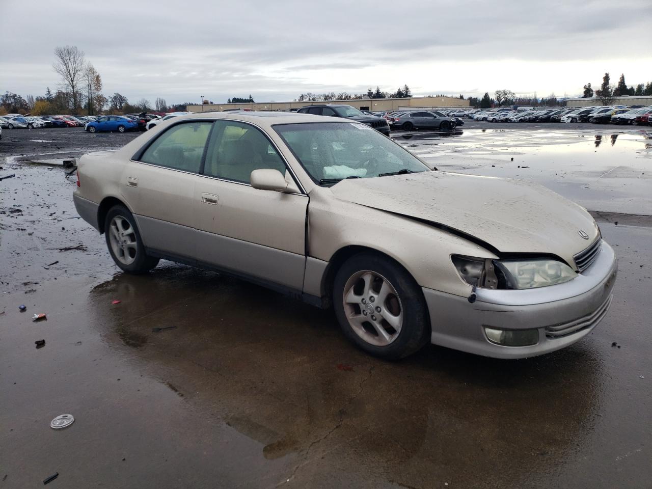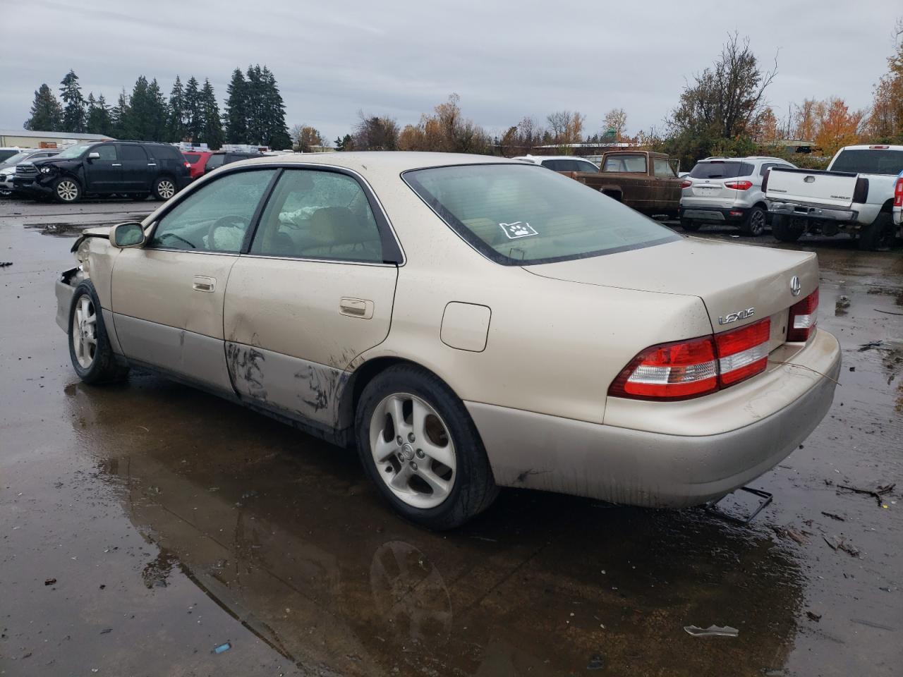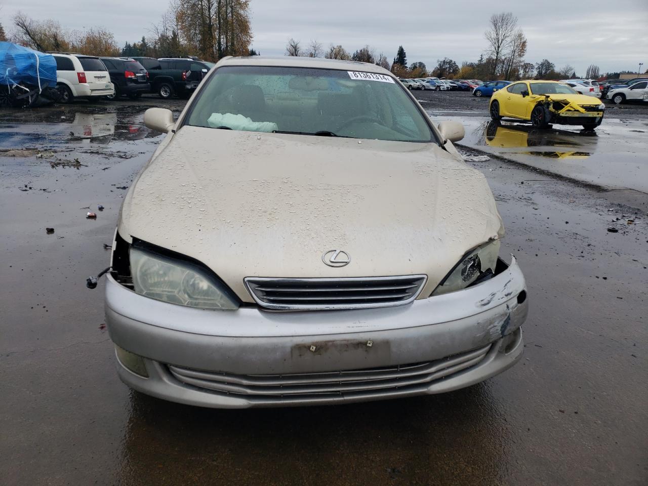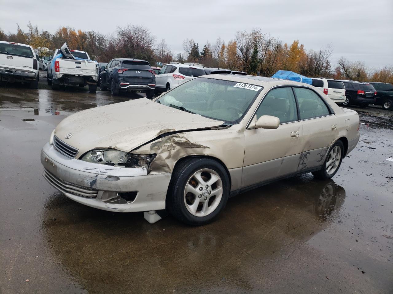 FairThis is a 2001 Lexus ES300, tan in color. It presents with significant front-end and side damage. The primary damage is to the front end, while the secondary damage affects the side of the vehicle. Interior damage includes deployed airbags. The wheels appear to be in acceptable condition, and the lights and glasses also have visible damage.
