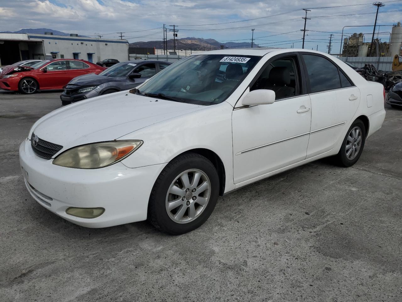 GoodThe 2004 Toyota Camry, a white sedan, shows signs of wear and tear. The exterior has minor dents and scratches, categorized as body damage. The interior displays moderate damage, especially on the seats. The vehicle starts and runs, verified as a run and drive.