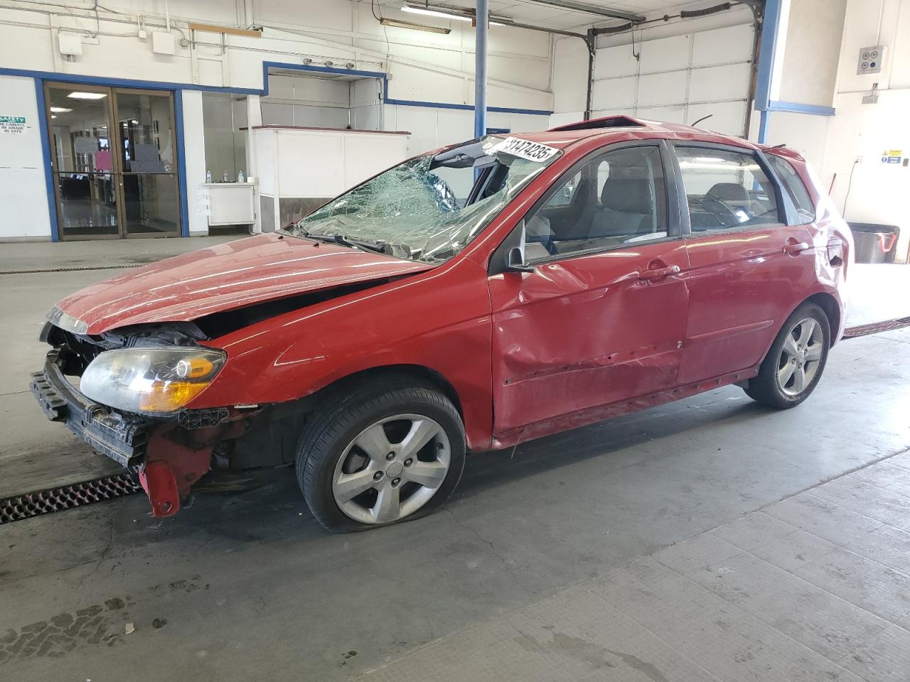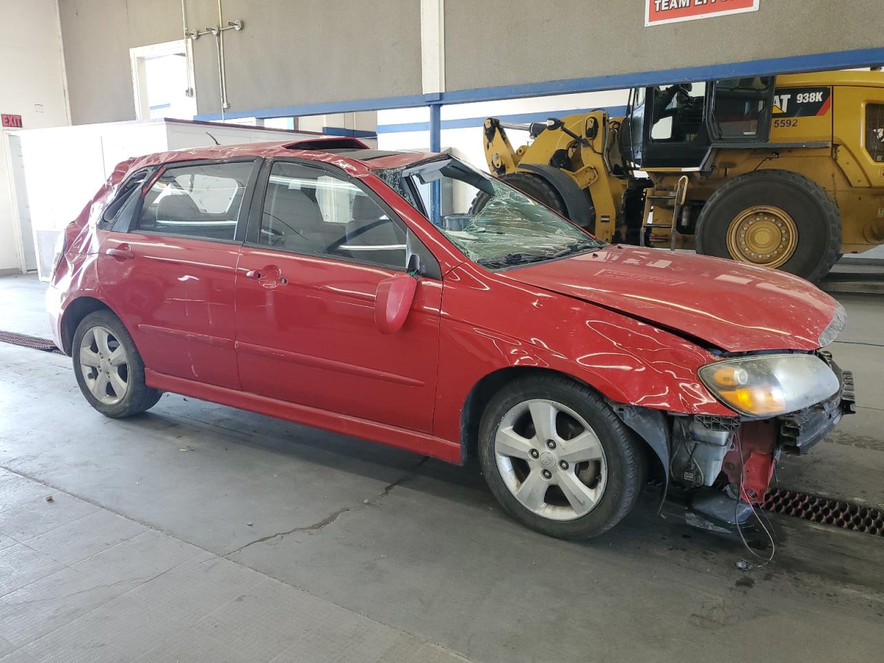 PoorThis red 2009 KIA SPECTRA SX has significant damage from a rollover. The exterior shows extensive damage, including a crushed roof, damaged body panels, and shattered windows. The interior has visible damage, with the windshield broken and damage to the dashboard and possibly airbags deployed. The wheels appear to be intact. The car is in overall poor condition and not drivable.