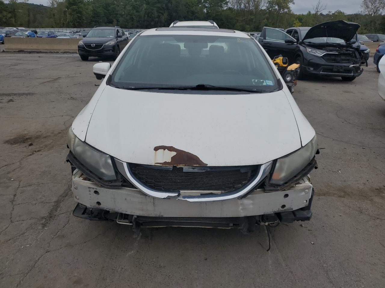 FairThis is a white 2014 Honda Civic EXL, which has sustained front end and side damage. The vehicle starts and runs, verified to be a Run & Drive vehicle. The exterior exhibits significant damage, particularly to the front end, including the bumper, likely headlights, and front panels. The side panels also show damage. Wheels appear intact. The interior shows signs of wear consistent with age and mileage. The car’s overall condition reflects moderate damage and requires repair before it is back on the road. The interior condition appears to be good.