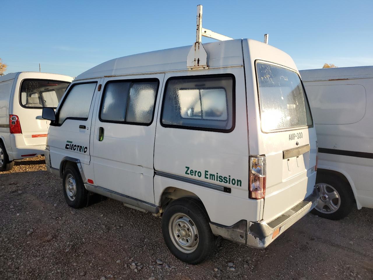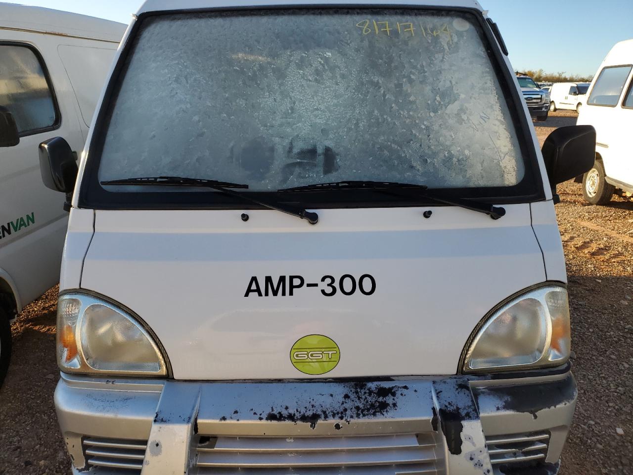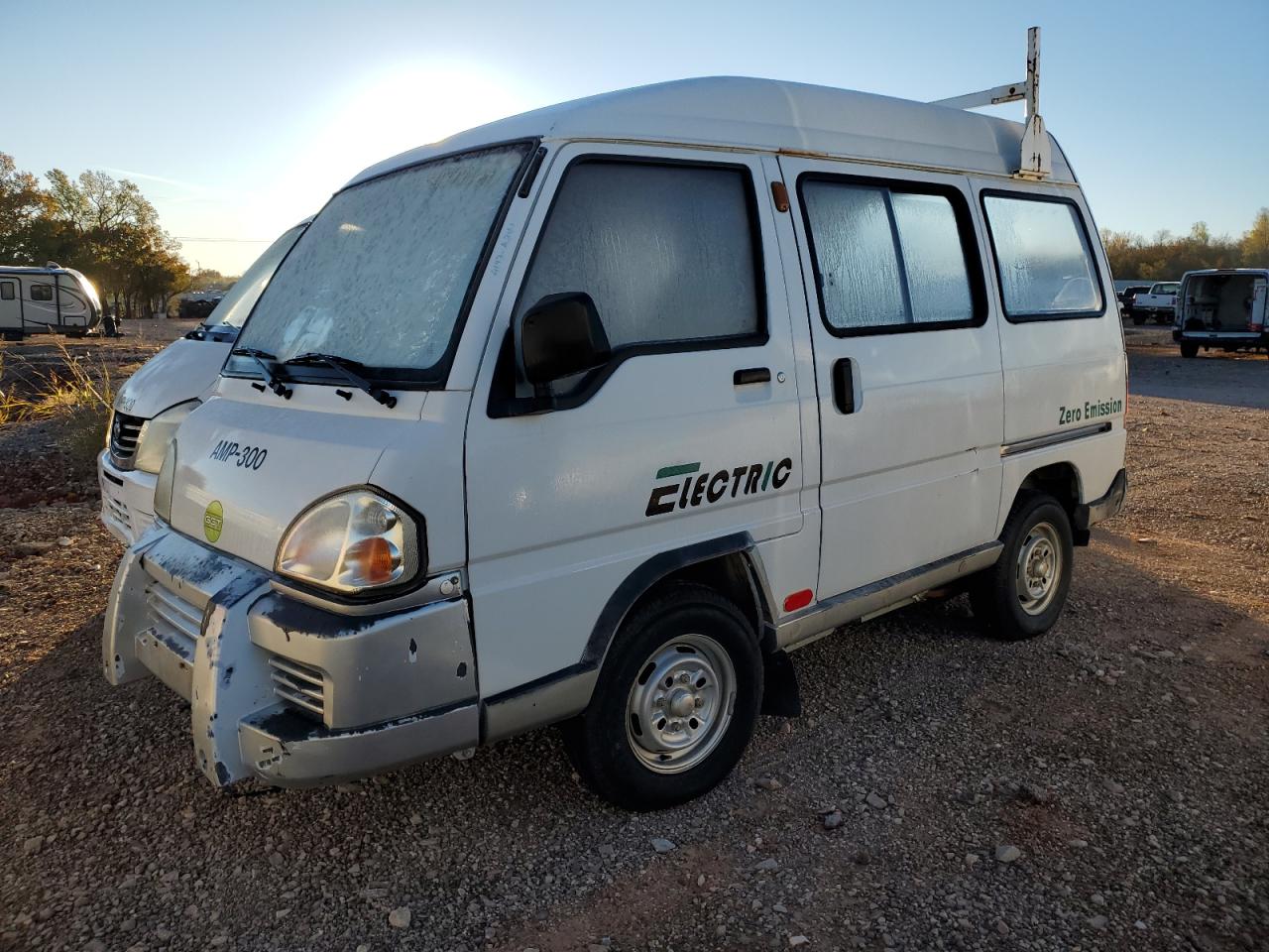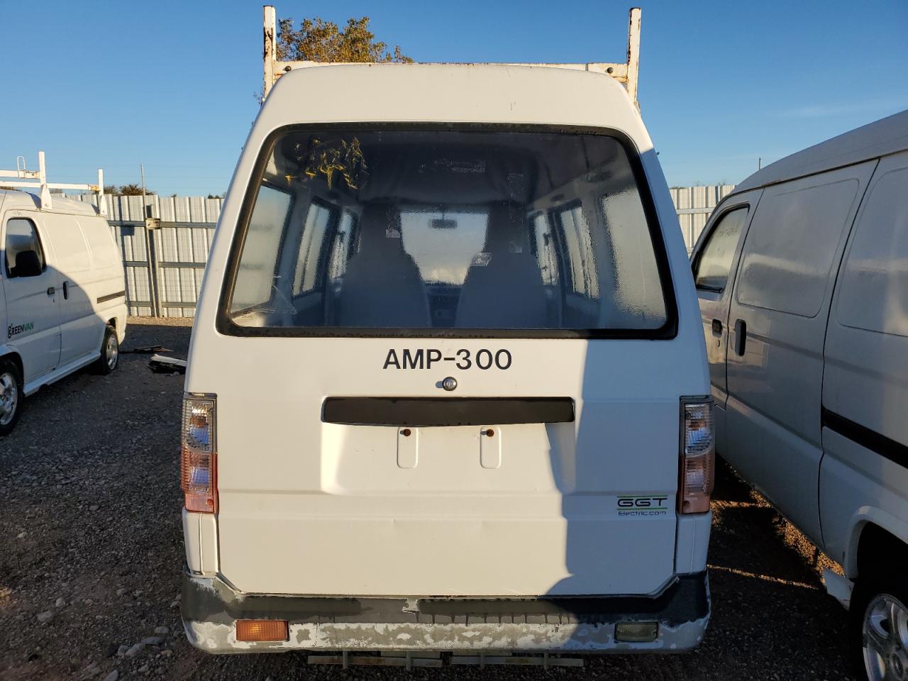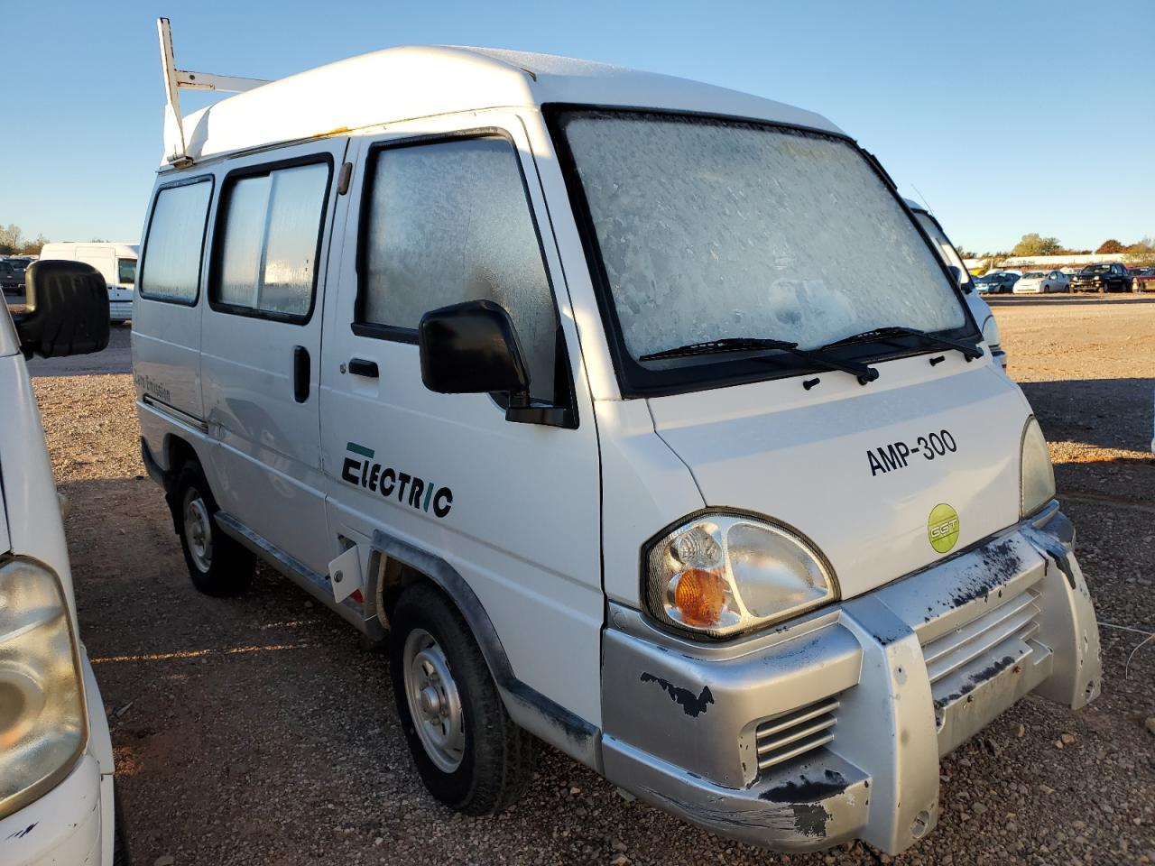 GoodThe GREE TEK E-DYNE 2012 electric van, a white vehicle with the 'ELECTRIC' branding, shows cosmetic and body damage. The exterior has minor dents and scratches, with potential wear and tear. The interior exhibits moderate visible damage. The vehicle appears drivable but may need repairs.