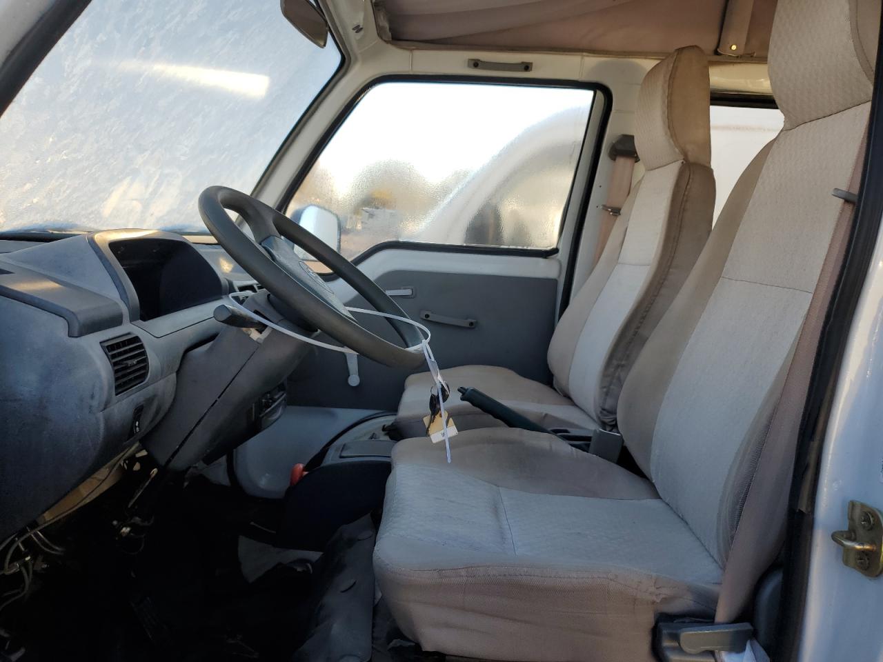 The vehicle has minor dents and scratches, and body damage. The interior shows visible damage and wear. There is no indication of major mechanical or frame damage. Glass and lights appear to be intact.