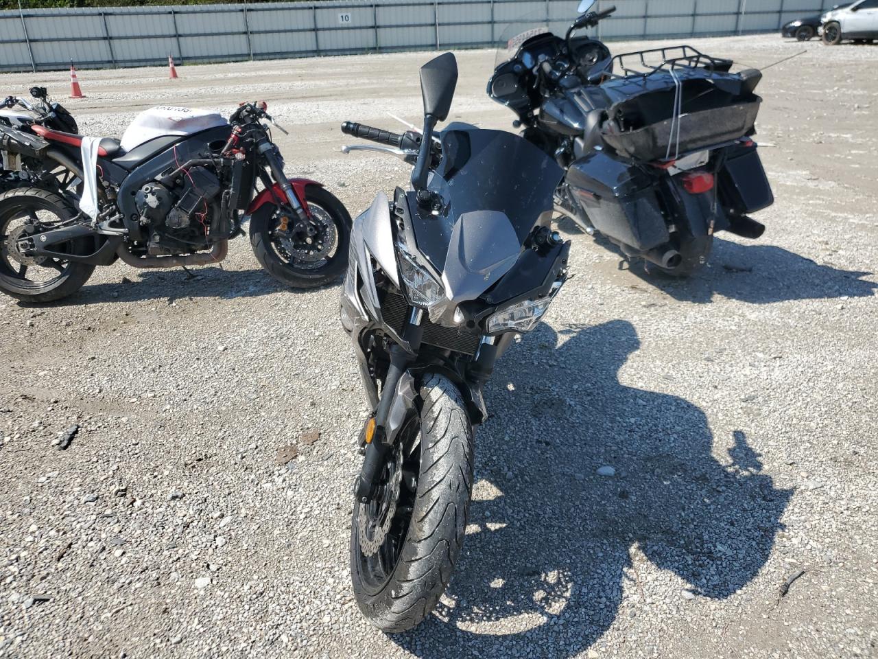 FairThis is a gray 2021 KAWASAKI EX650 N motorcycle with front end and side damage. It's a Run & Drive Verified vehicle. The damage includes front-end impact and side damage. The wheels appear intact. Lights and glasses are potentially damaged. The motorcycle is in a drivable state, but requires some repair.