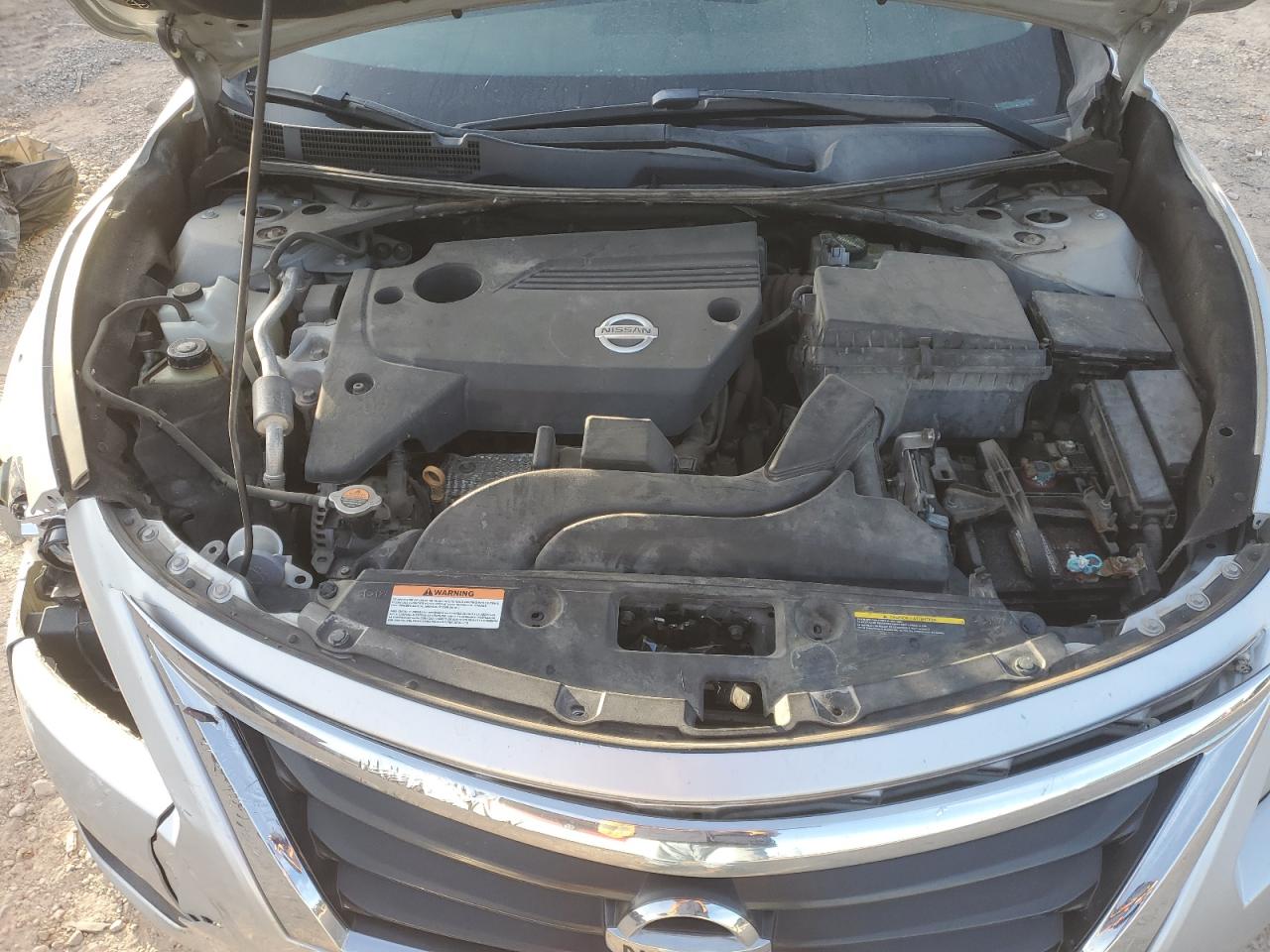 FairThe 2013 Nissan Altima 2.5 in silver exhibits significant damage. The primary damage is to the front end, and the secondary damage is all over the vehicle. The car starts and runs. The wheels appear intact, and the glass is in good condition. The interior shows moderate wear and tear.