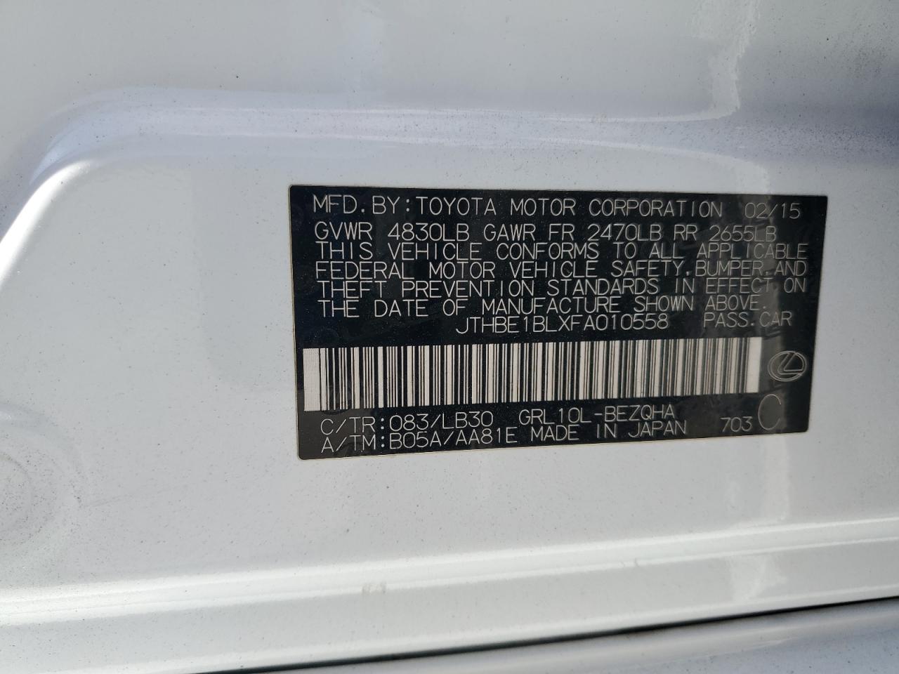 JTHBE1BLXFA010558Date