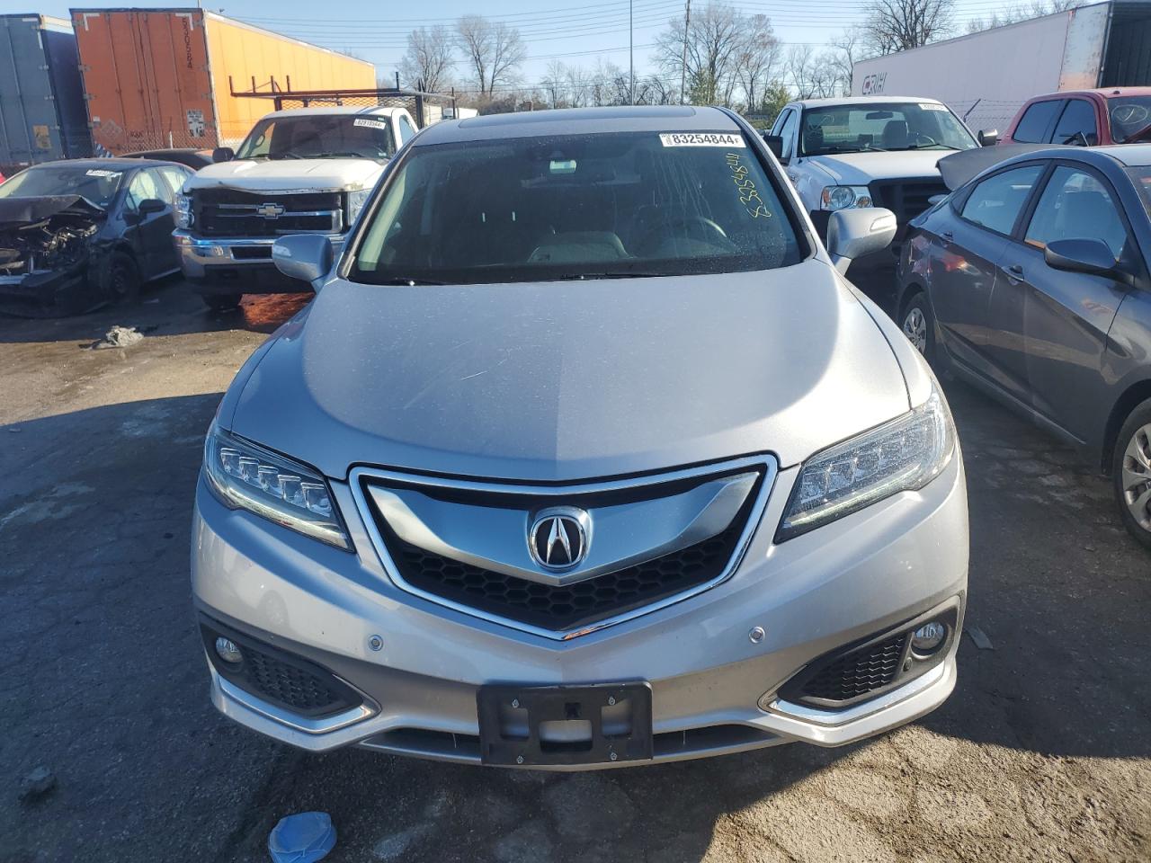 FairSilver 2018 Acura RDX ADVANC with Run & Drive Verified status. The primary damage is to the side of the vehicle, with no secondary damage noted. The car displays moderate visible damage. The wheels appear intact, the lights and glass seem undamaged. The interior shows minor wear and tear, the airbags are deployed. This car needs some repairs.