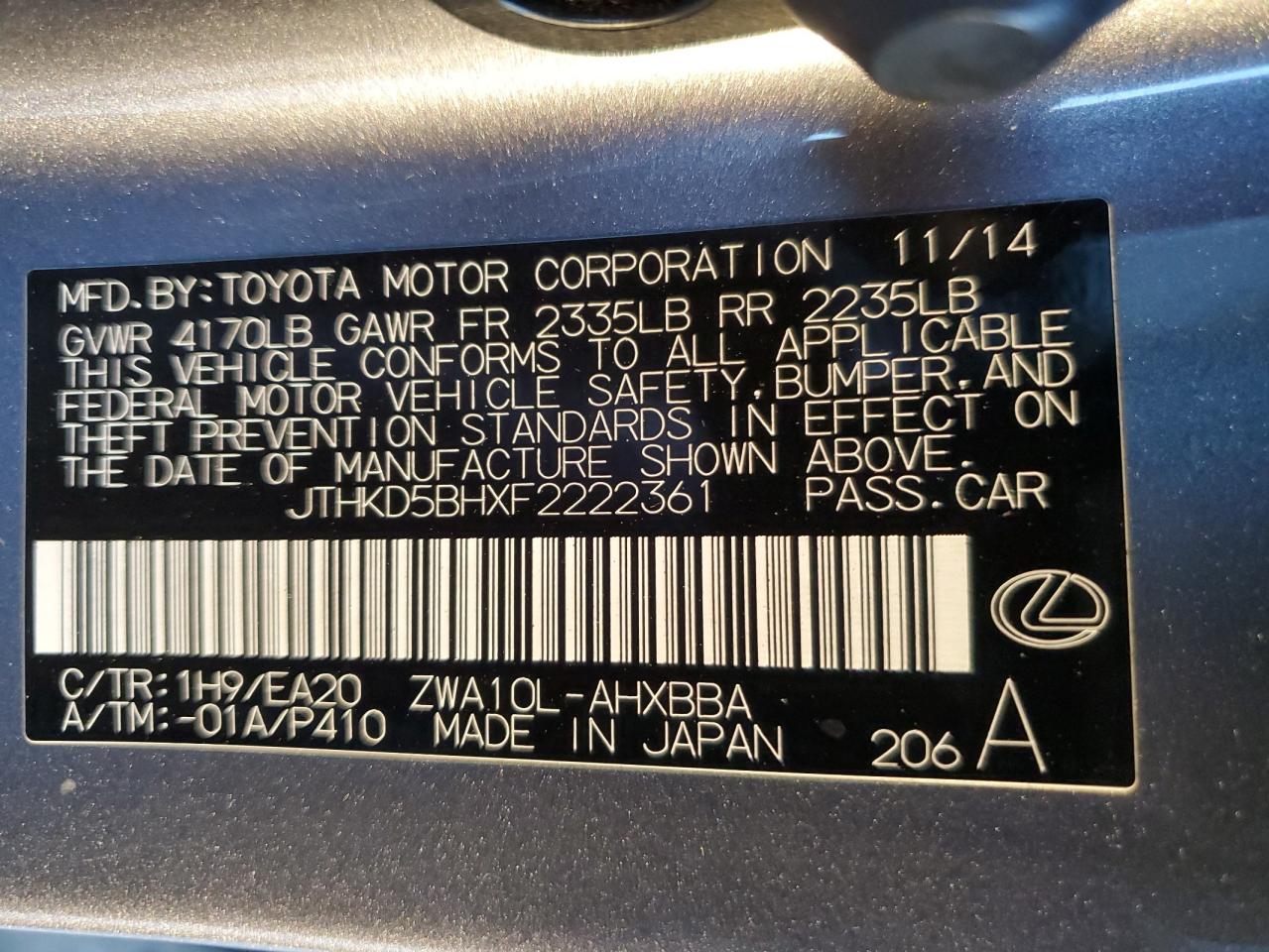 JTHKD5BHXF2222361Final Bid