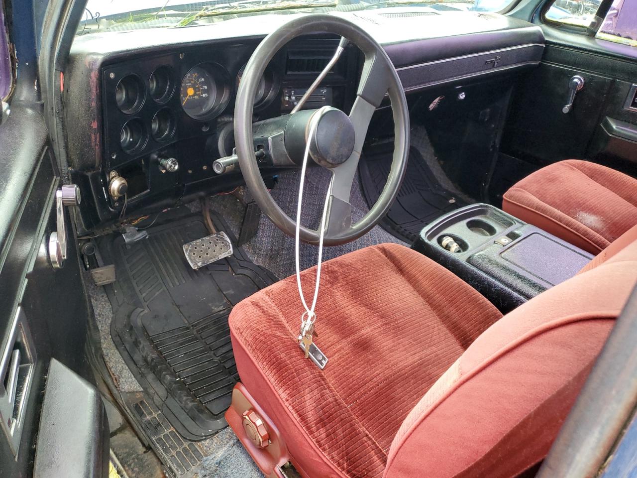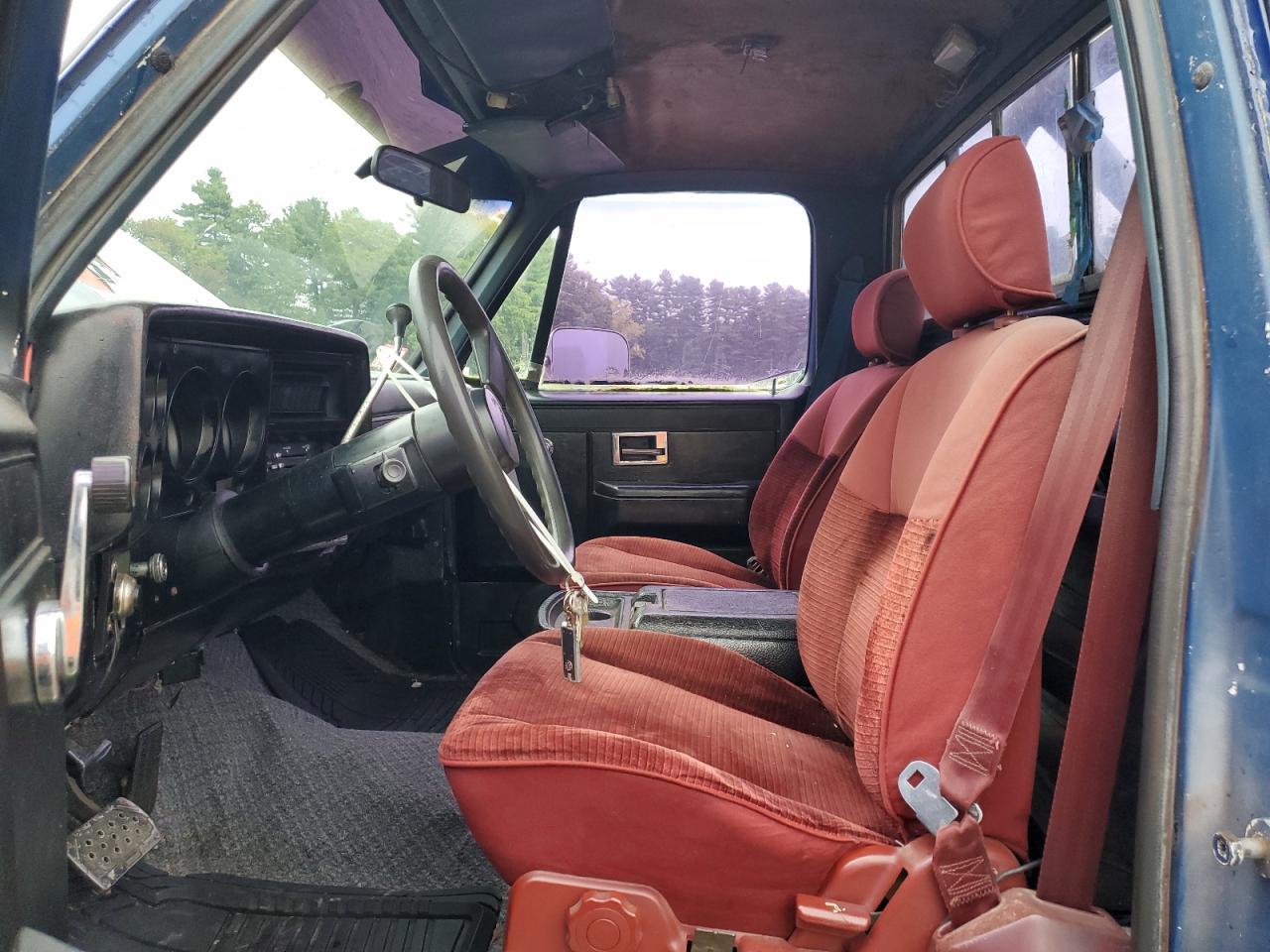 Fair1985 CHEVROLET C/K 20 SER in blue, suffering from a BURN - ENGINE. The exterior shows MINOR DENT/SCRATCHES. The overall condition is Fair, the interior is Fair. The wheels appear to be in decent shape. The headlights and taillights are present and may be functional. The glass appears to be intact. The car's overall state is Fair. The damage list includes: Body panel damage, Engine burn. The interior has visible damage. Potential parts to buy: body panels, engine components.
