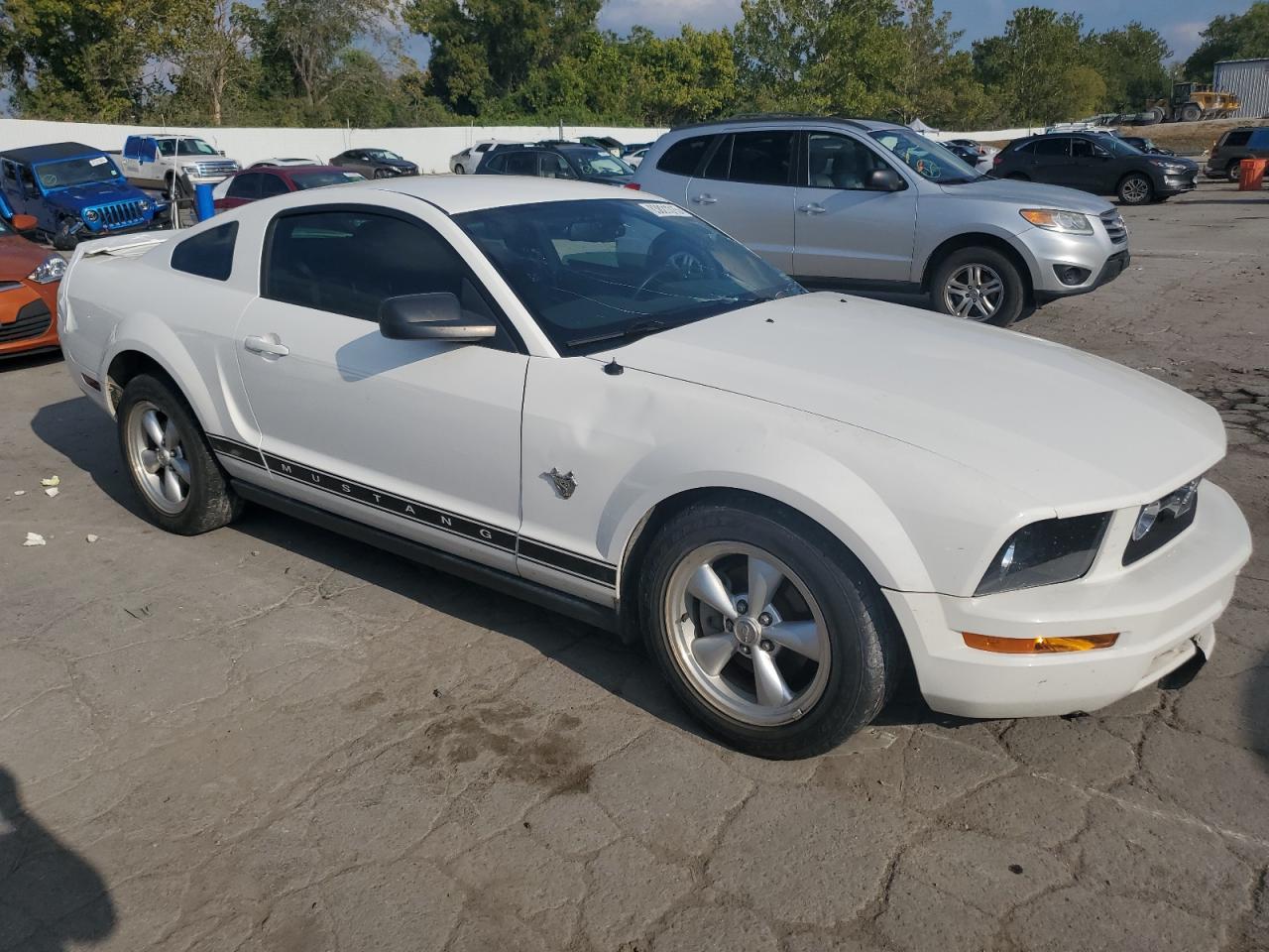 FairThis is a white 2009 Ford Mustang. It has sustained damage primarily to the side and front end. The car is described as Run & Drive Verified, indicating it is drivable.