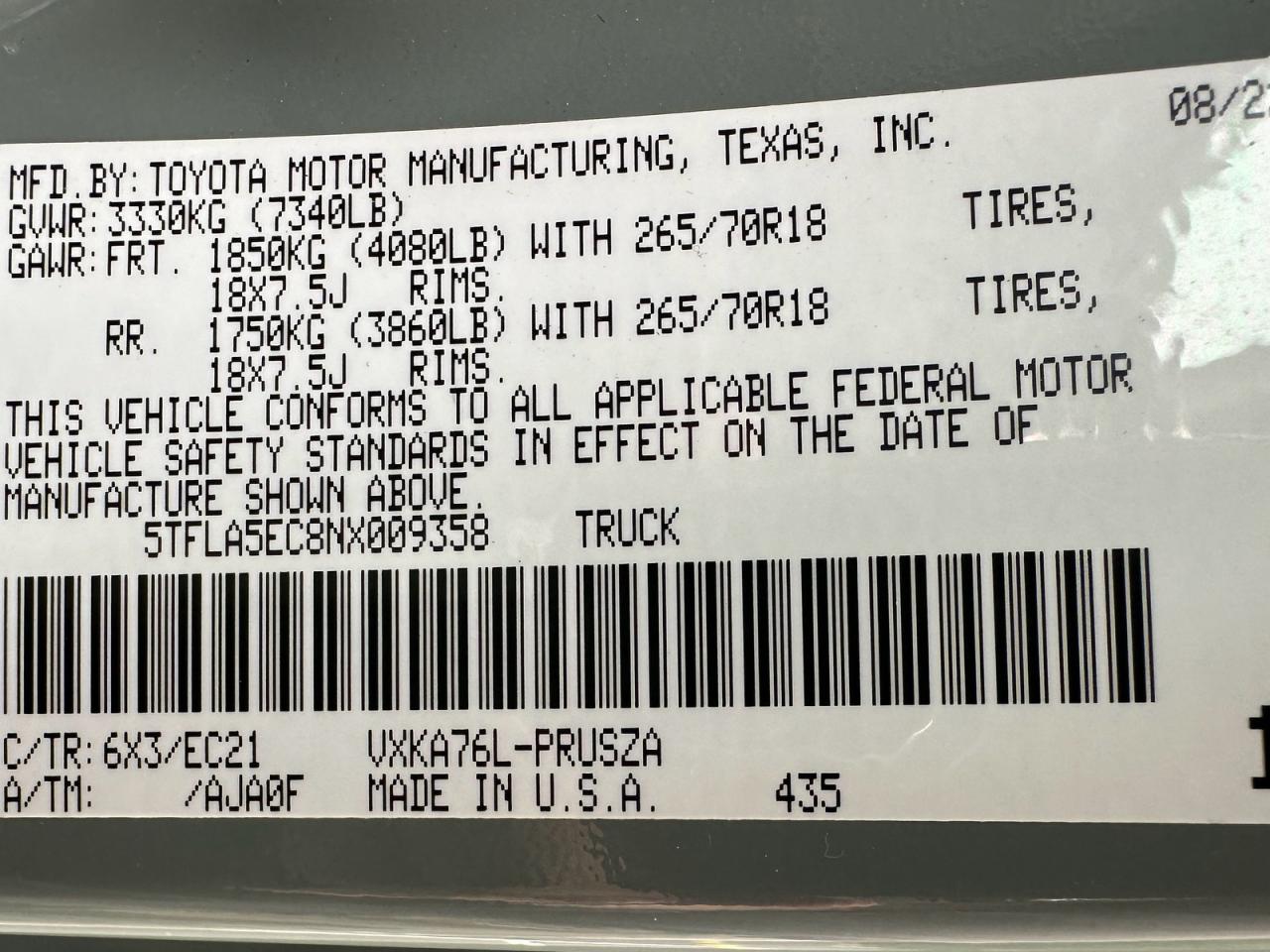 5TFLA5EC8NX009358Location