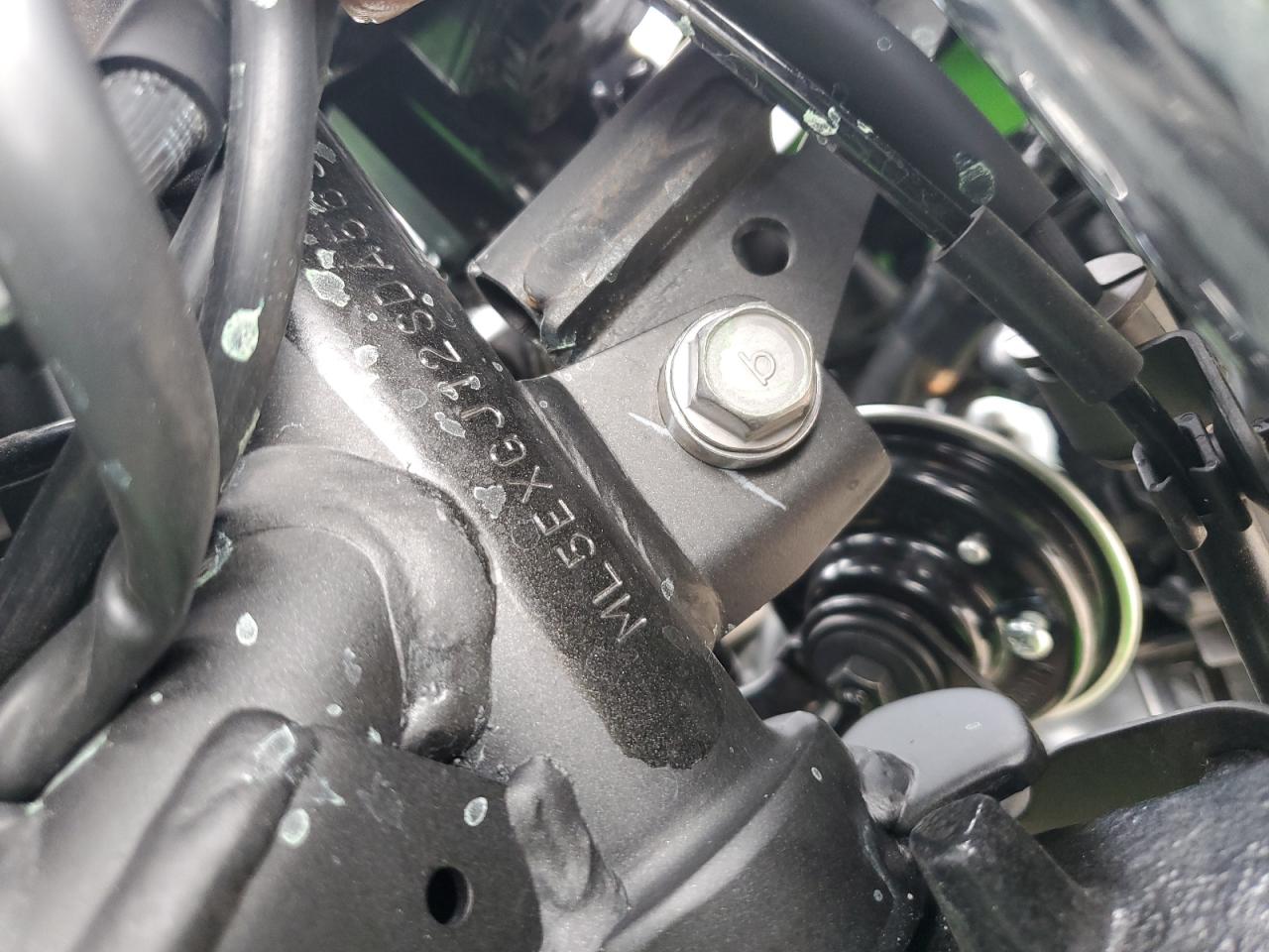 FairThe motorcycle is a green KAWASAKI EX500 A from 2025. It has suffered front-end and side damage. The start code indicates it's a Run & Drive Verified vehicle. Damage Assessment: The front end shows significant damage, likely impacting the lights, and front body panels. Side damage is also present. The wheels appear to be intact. The interior condition is good. It appears the airbag are ok. Summary: Motorcycle with major damage, the motorcycle has major damage to the front end and the side, with overall condition being fair due to its damage.