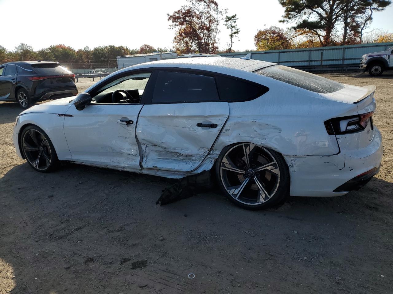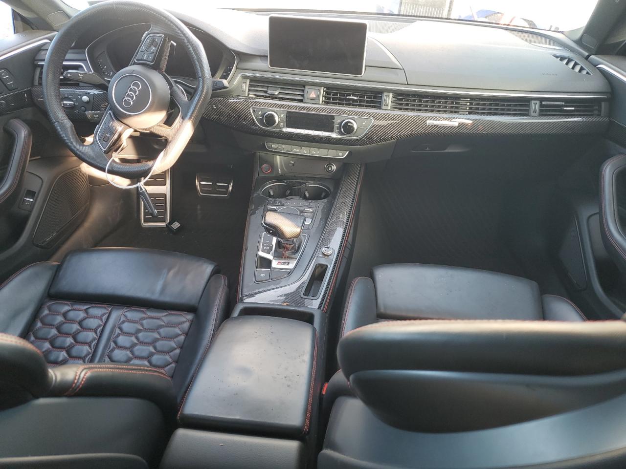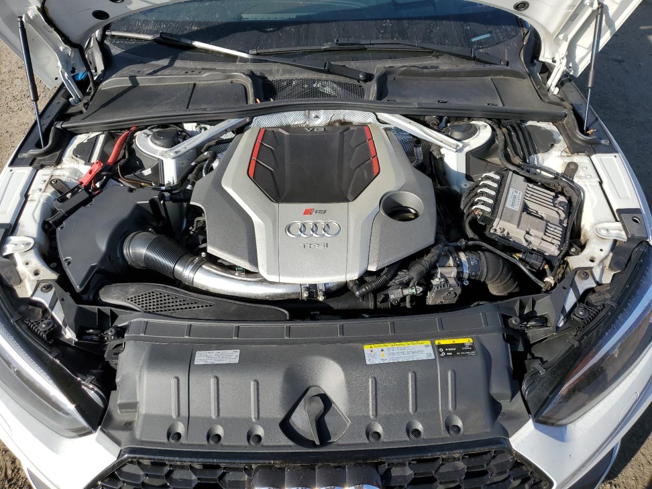 FairThe 2019 Audi RS5, presented in white, has sustained significant damage. The primary damage is on the side, with a secondary impact to the front end. Despite the visible damage, the wheels appear to be intact, and the lights and glasses seem to have survived the impact. The interior condition appears to be relatively well-preserved. The car has suffered damage to body panels, indicating a 'Body' vehicle damage category.