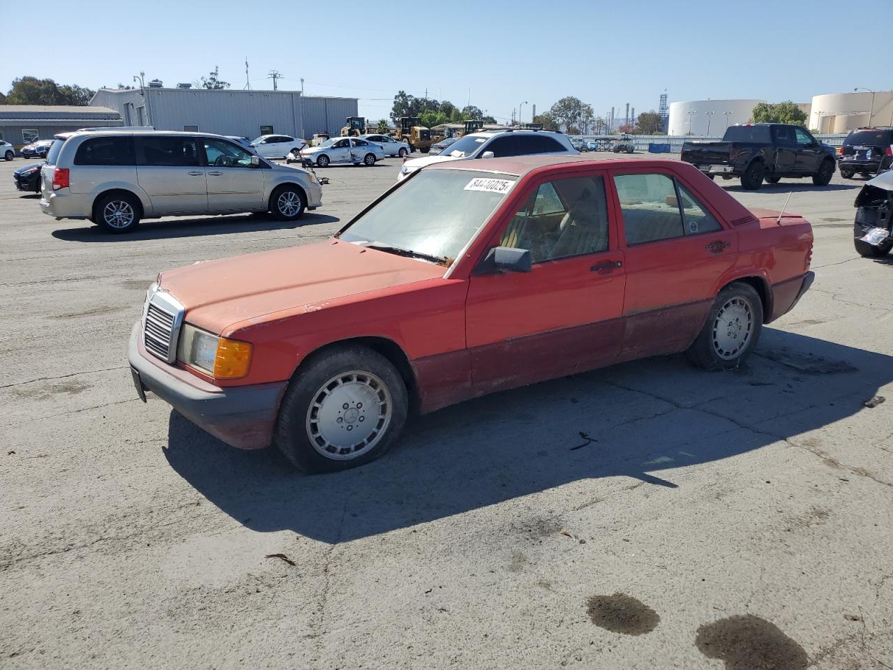 FairThe 1991 MERCEDES-BENZ 190 E 2.6 is showing signs of its age. The red paint has faded, and there are noticeable scratches and dents across the body. The car appears drivable. The interior shows some wear and tear but is in a relatively good condition. The lights and glasses are in the state.
