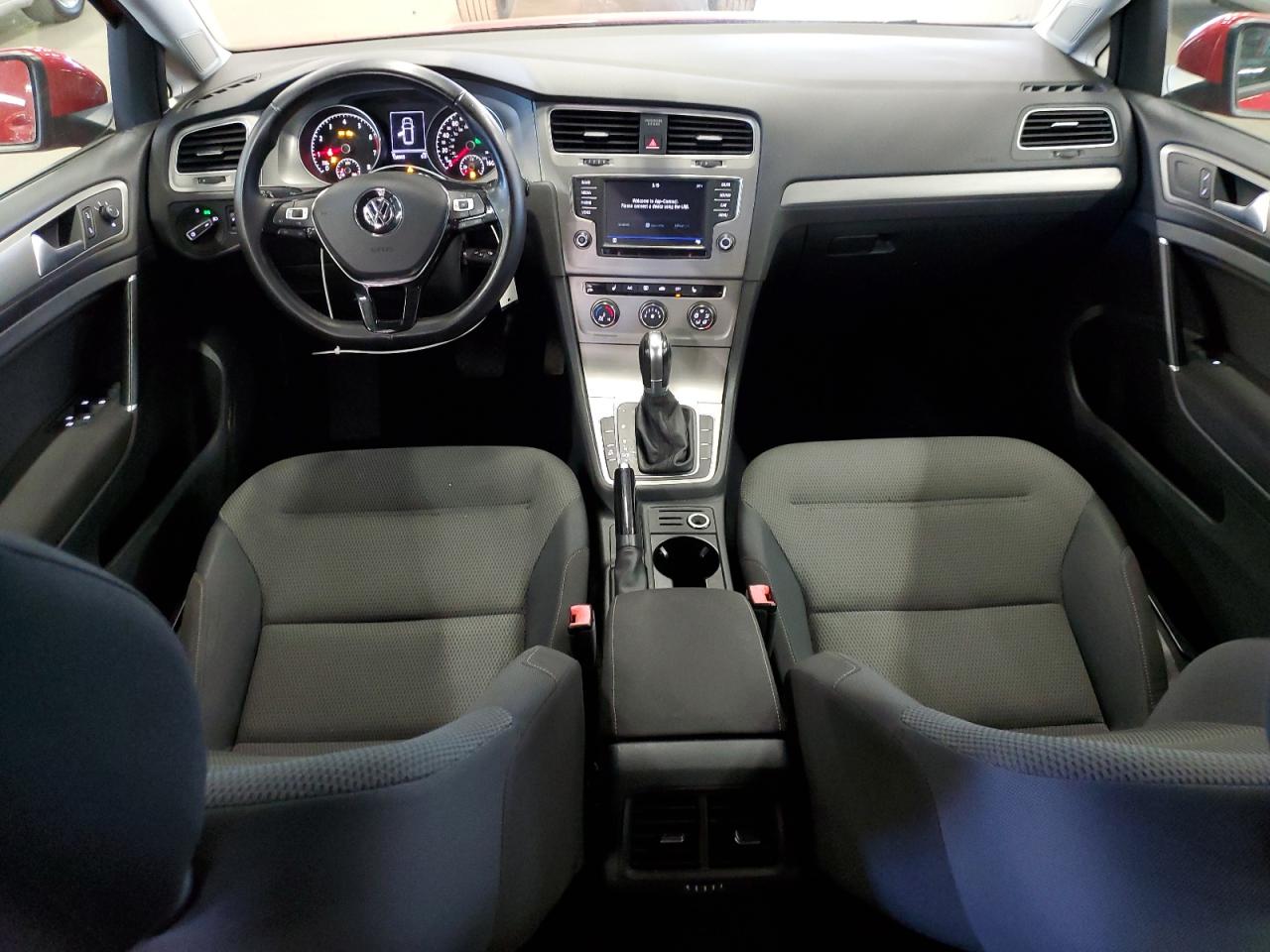 Good2017 Volkswagen Golf Sportwagen in red. The vehicle shows minor dent/scratches, classified as 'Run & Drive Verified.' The exterior condition is good, with minor visible damage. The interior is in good condition, exhibiting normal wear and tear. Wheels appear to be in good shape. The car has no damage, the engine looks fine and drivable. The airbag is not specified and we can't see the state. Overall, the car is drivable.
