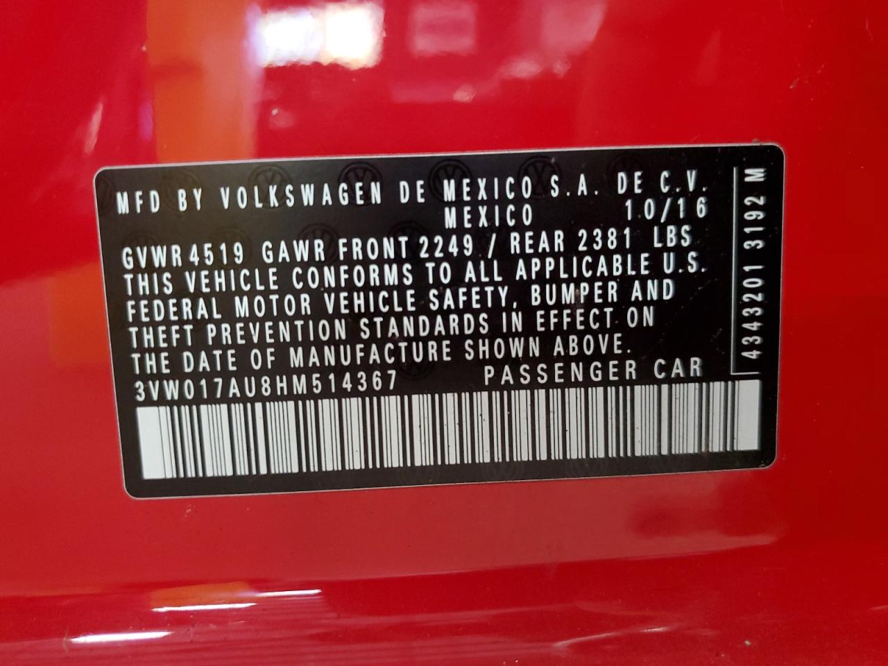 3VW017AU8HM514367Final Bid