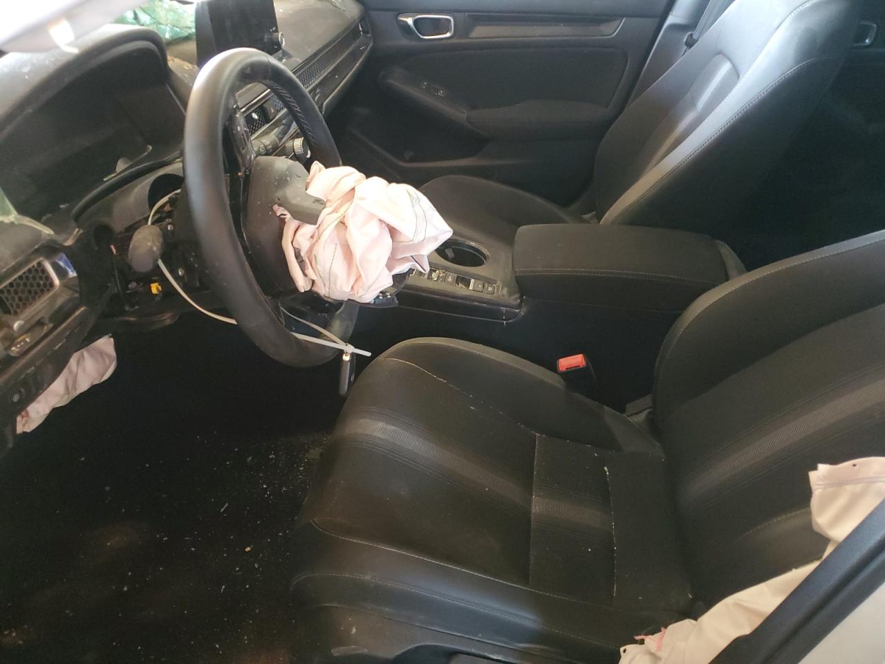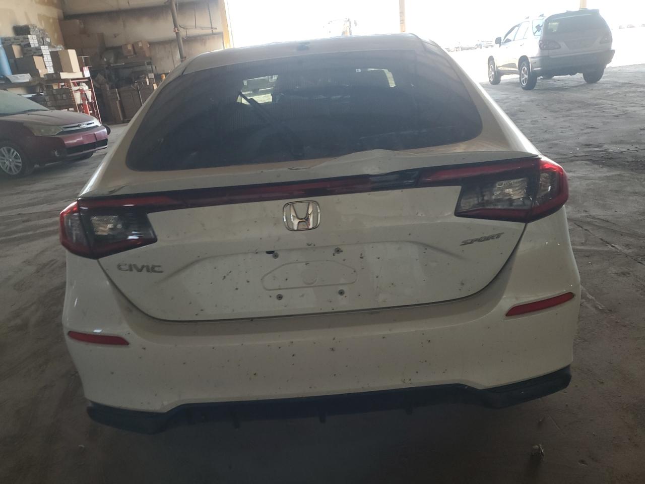 FairThis is a damaged white Honda Civic Sport 2025. The car has sustained significant front-end damage, including a collapsed hood, damaged front bumper, and a compromised windshield. The airbags have deployed and the interior show considerable damage. The wheels appear to be intact, but the vehicle is likely not drivable in its current condition. The overall condition of the car is rated as Poor.