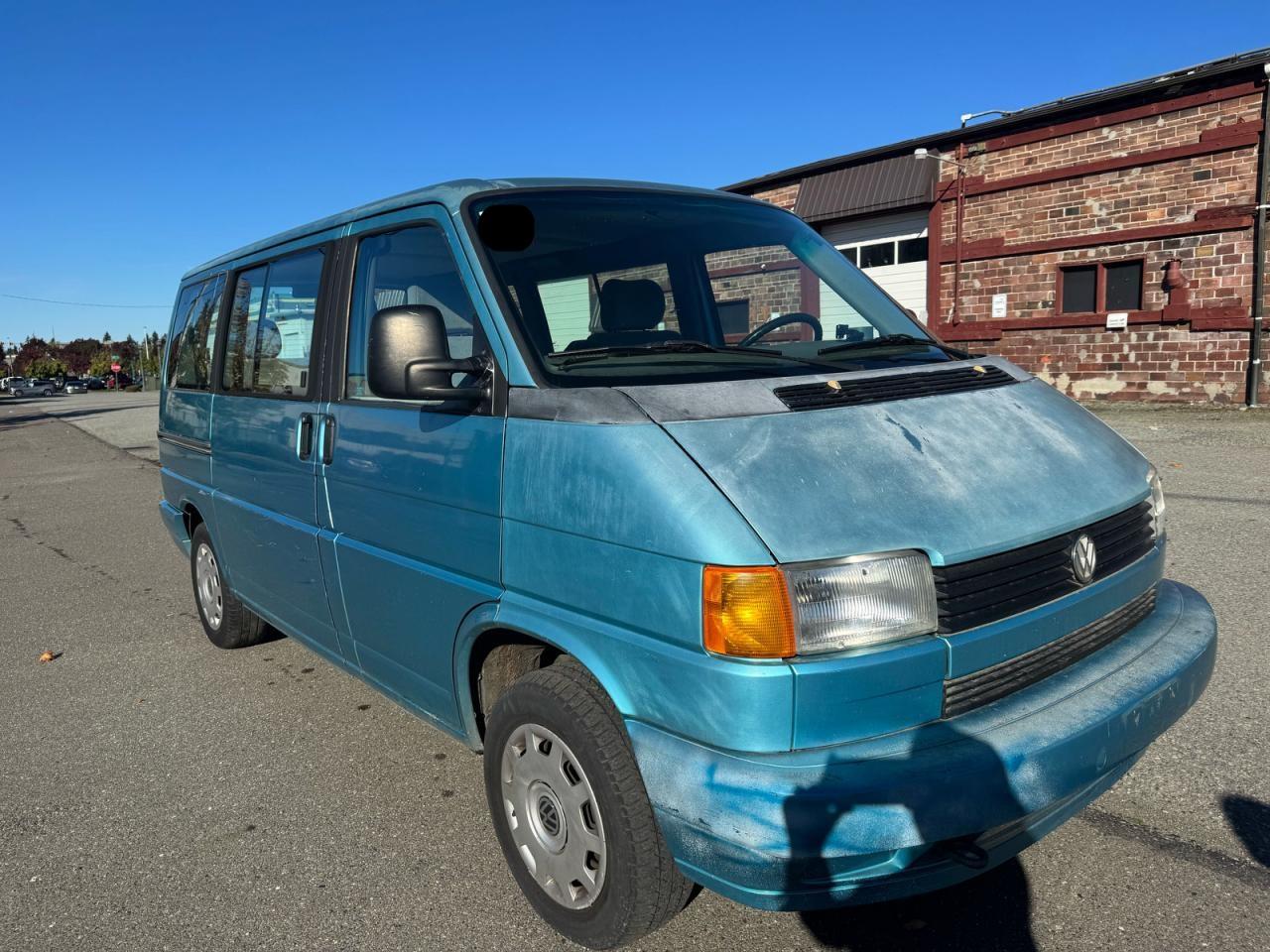 GoodThis 1993 VOLKSWAGEN EUROVAN MV, with its blue exterior, shows signs of normal wear and tear. The vehicle's paint has some blemishes, but the body panels appear intact. The interior shows moderate wear consistent with its age. The car starts and runs, indicating its mechanical components are functional. The wheels and lights are in fair condition. There is no airbag damage. The car is drivable and has potential.