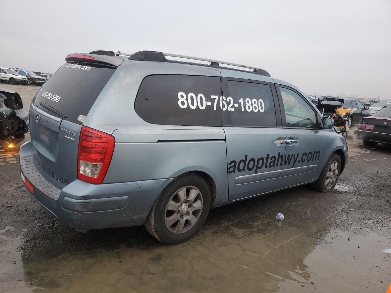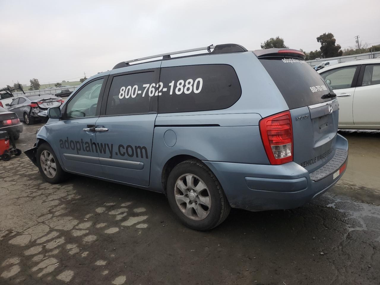 FairThe 2007 Hyundai Entourage shows front-end damage with body panel damage. The blue minivan, branded with "adoptahwy.com," has sustained significant impact, with the front end severely compromised. The interior shows wear and tear. The vehicle starts, it's a good candidate for repair.