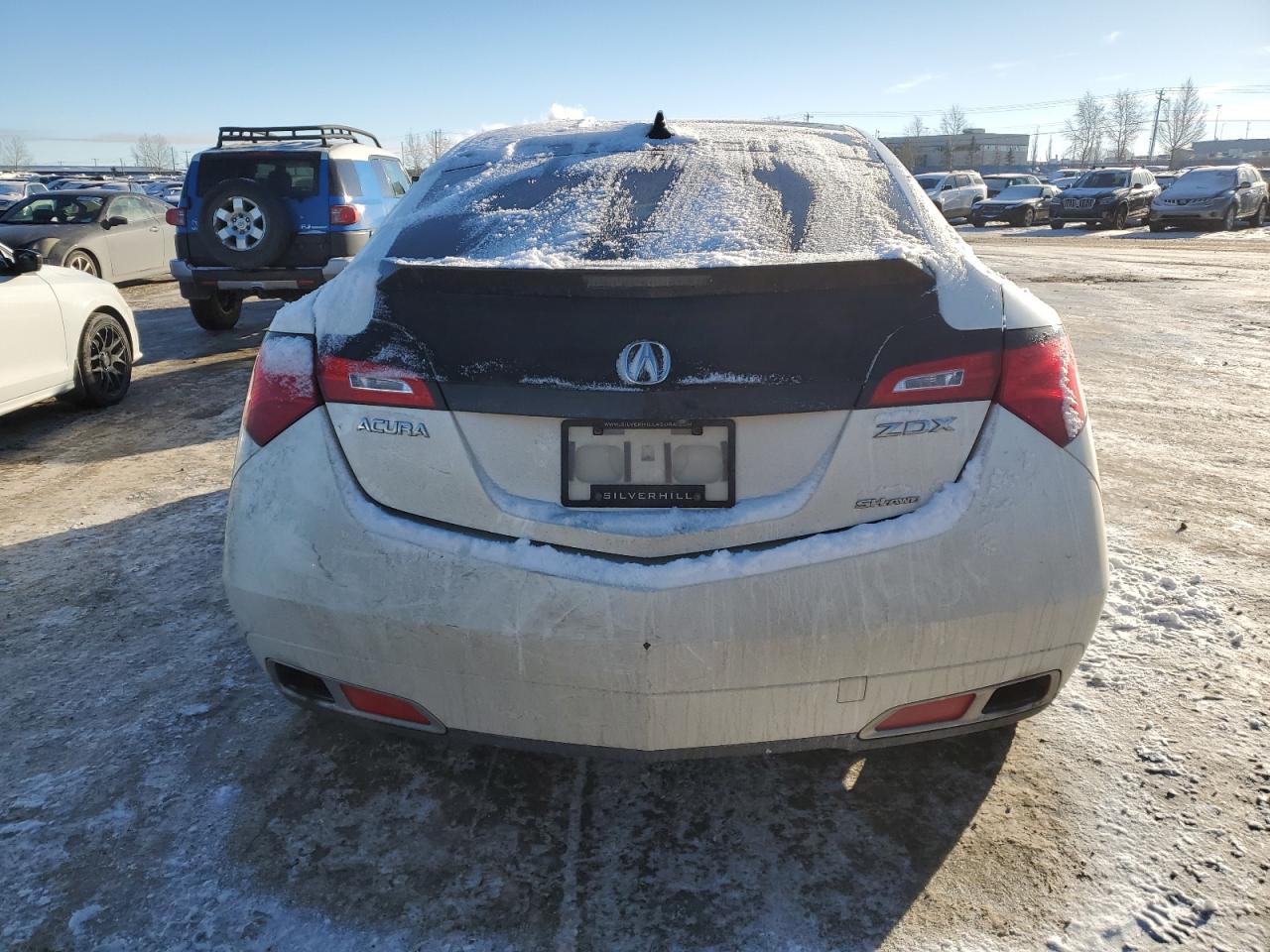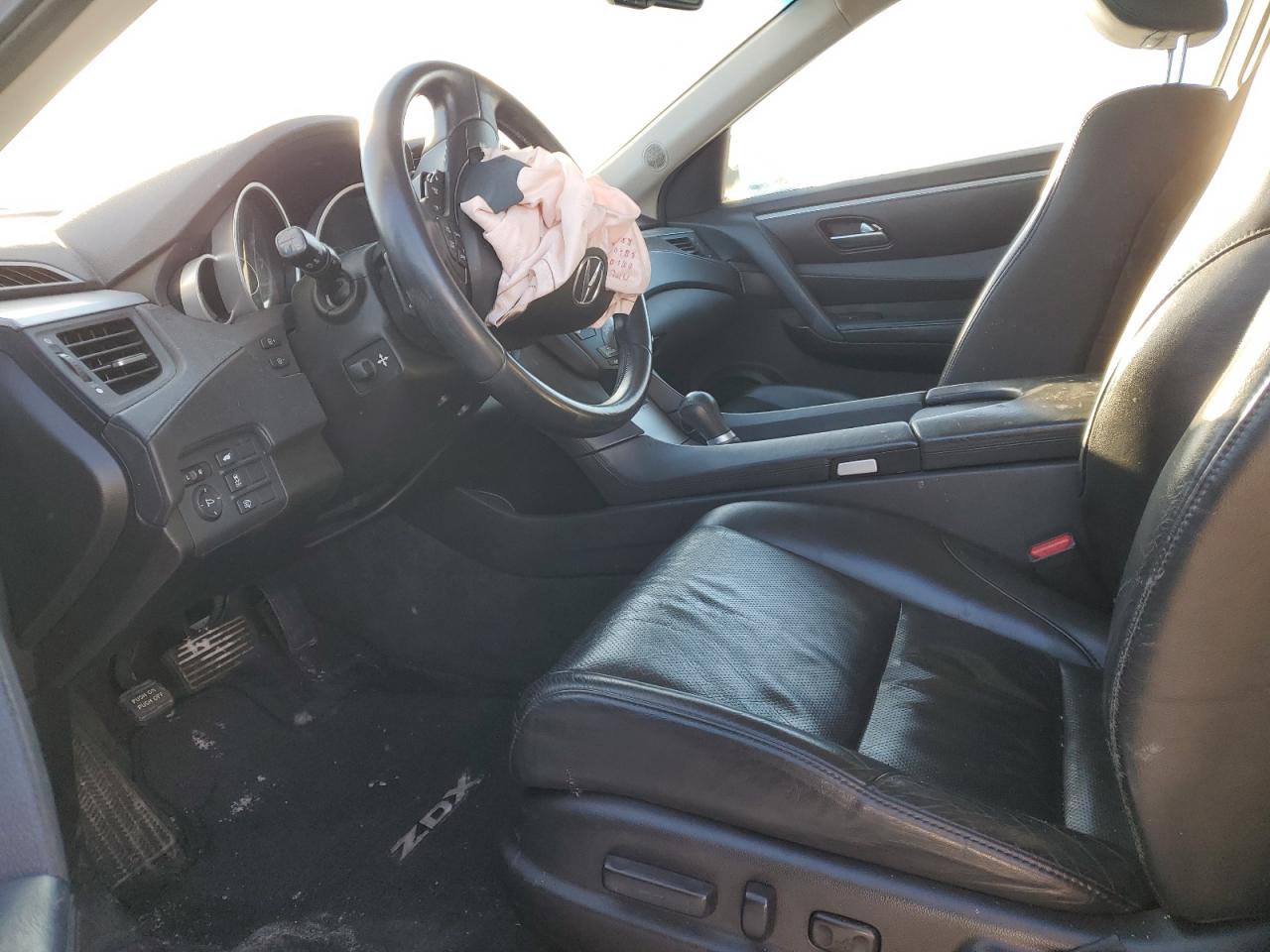 FairThe 2010 Acura ZDX TECHNO in white exhibits significant damage. The primary damage is to the front end, with secondary damage to the side. The exterior shows considerable impact, affecting body panels and potentially underlying structures. Interior assessment reveals deployed airbags and potential damage. The vehicle is likely not drivable in its current state.
